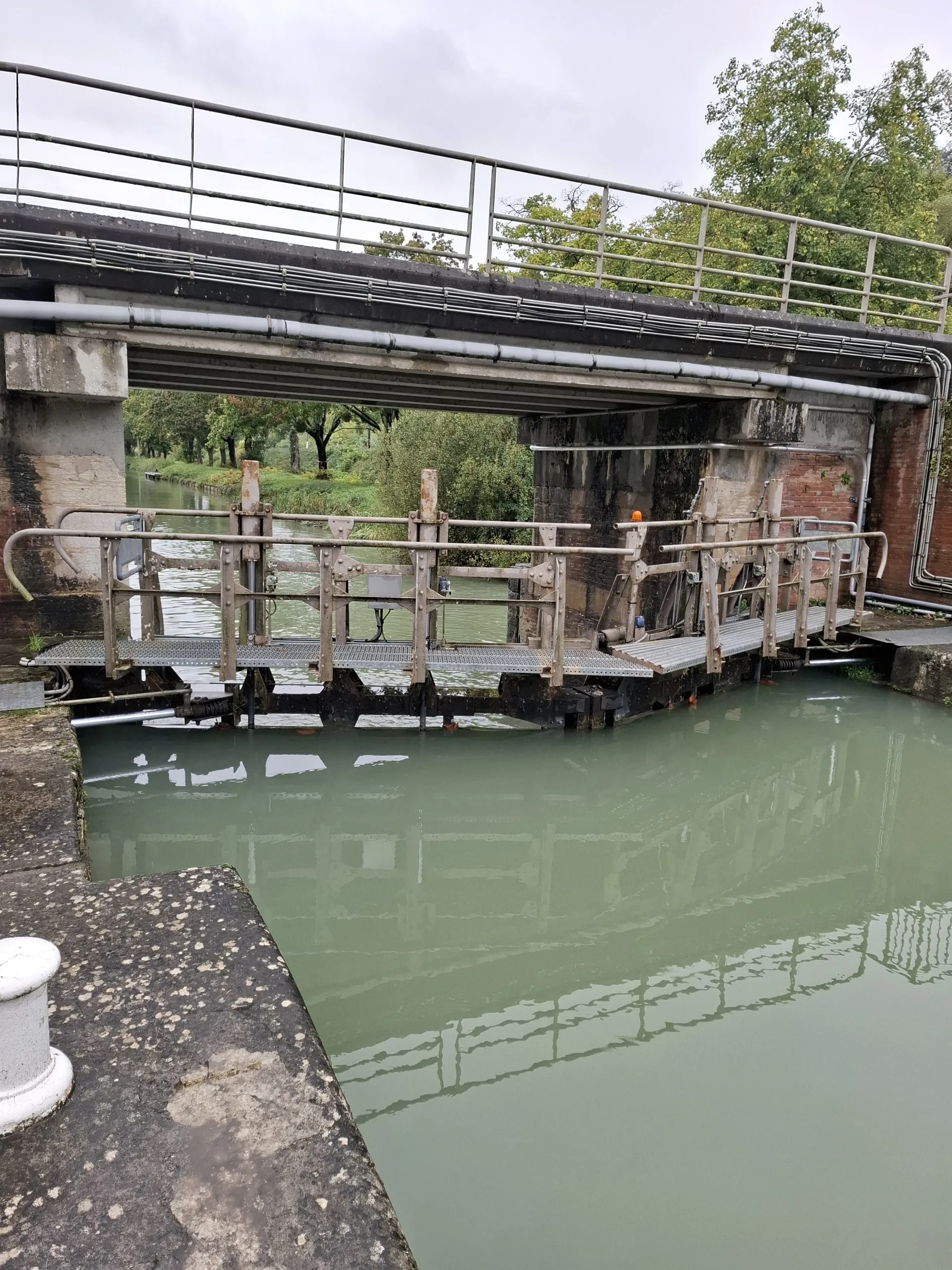 Nechápu, proč je v plavebním kanále krásně čistá modrozelená voda a v Garoně tmavě hnědá povodňová. Při tom v jednom místě se stýkají?!?