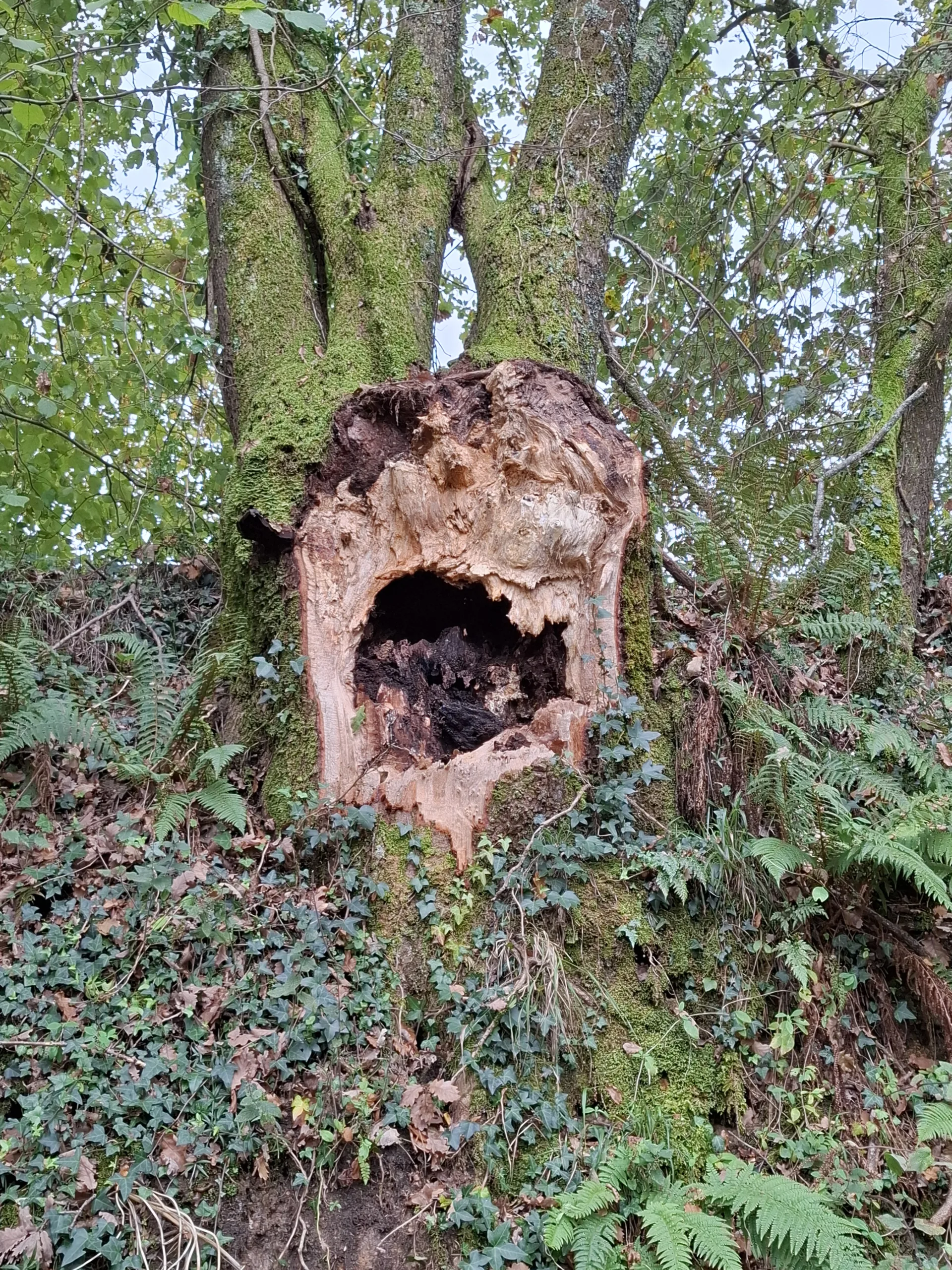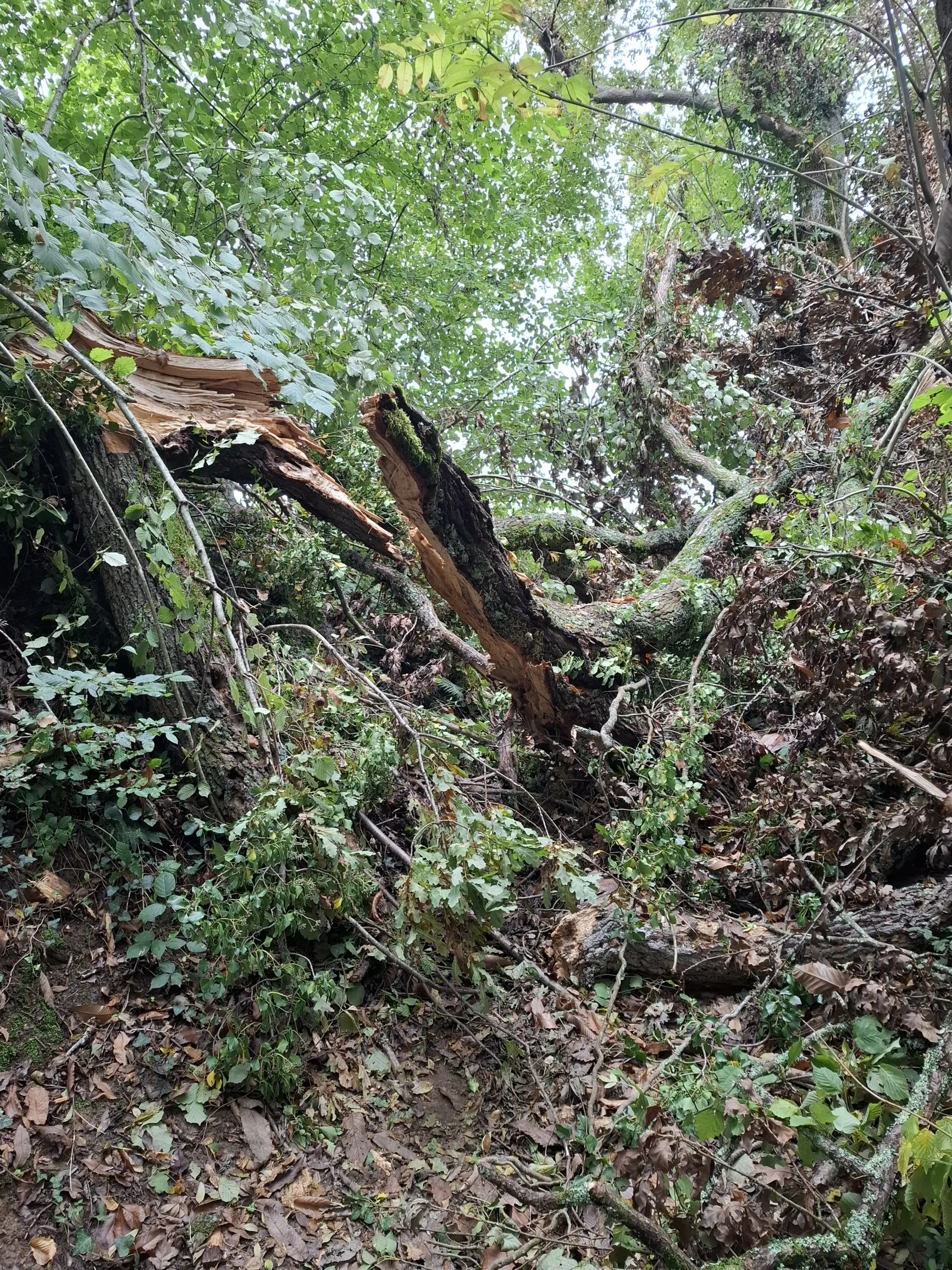 Kousek za portréty se ke mě připojuje nějaký Švéd. Správný řízek, prolézáme spolu úvozem kolem padlého dubu a v tom mi dojde , odkud ho znám. Jeho fotku nám ukazoval Florián v Condom jako člověka s nejdelším kredenciálem, co viděl! Tak si to potvrzuji a fakt je to on. Jde už od jara rovnou z Uppsaly, takže má v nohách ještě o 2000 kilometrů víc než já. Vždycky, když mu dojde stránka, tak do kredenciálu dolepí další A4 a když ho roztáhne, tak už mu ruce nad hlavou nestačí.