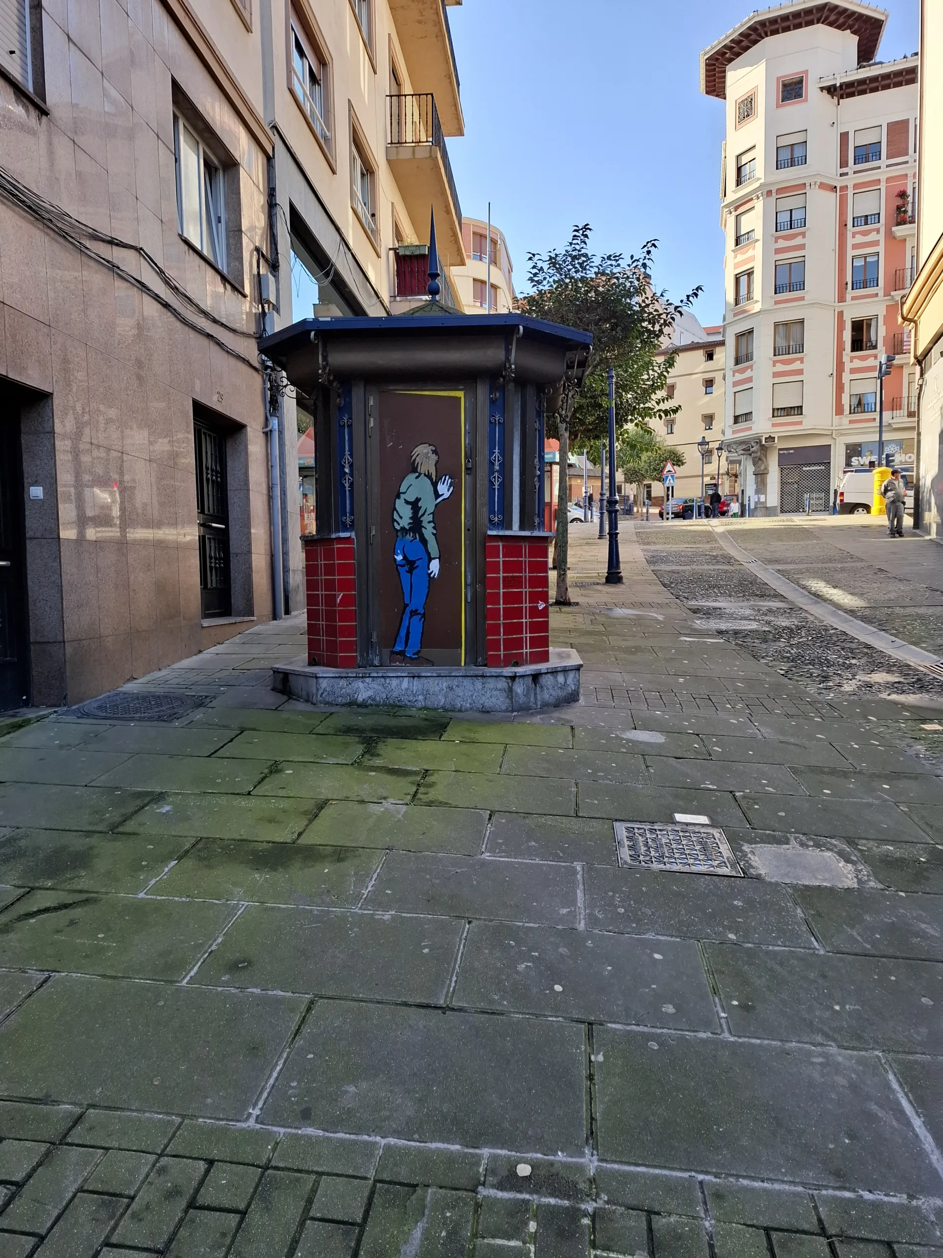 Což je docela klika. Cítím kapku napětí v břišní oblasti a na parkovišti vidím automatickou nerezovou kadibudku. To je radosti. Jen návod na použití v baskičtině situaci neulehčuje. Zmáčknu nějaký čudlík, hodím půl euro, zámek cvakne, uvnitř nerezdíra se dvěma šlapkami ale žádný háček kam bych pověsil baťoh! Na automaticky oplachovanou podlahu ho odložit nechci, venku taky zůstat nemůže, no abych to zkrátil. Sedět na bobku, dělat bobek, držet kalhoty a baťoh je opravdu atletický výkon. Nicméně jsem vyšel neposkvrněn, bez čehokoli, co mělo zůstat uvnitř na kalhotách. Paráda!