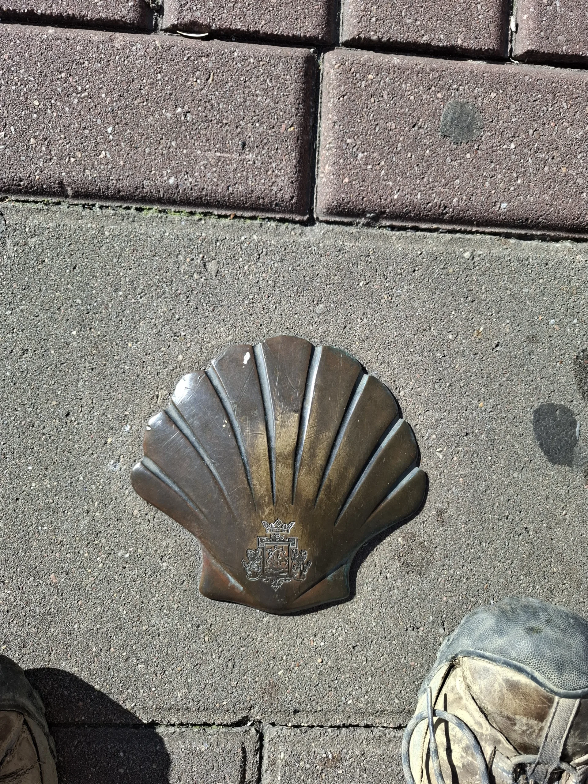 Značky svatojakubské pouti mě vedou nahoru do města. Tentokrát je chodník bez eskalátoru, ale za to s krásnou historickou kadibudkou.