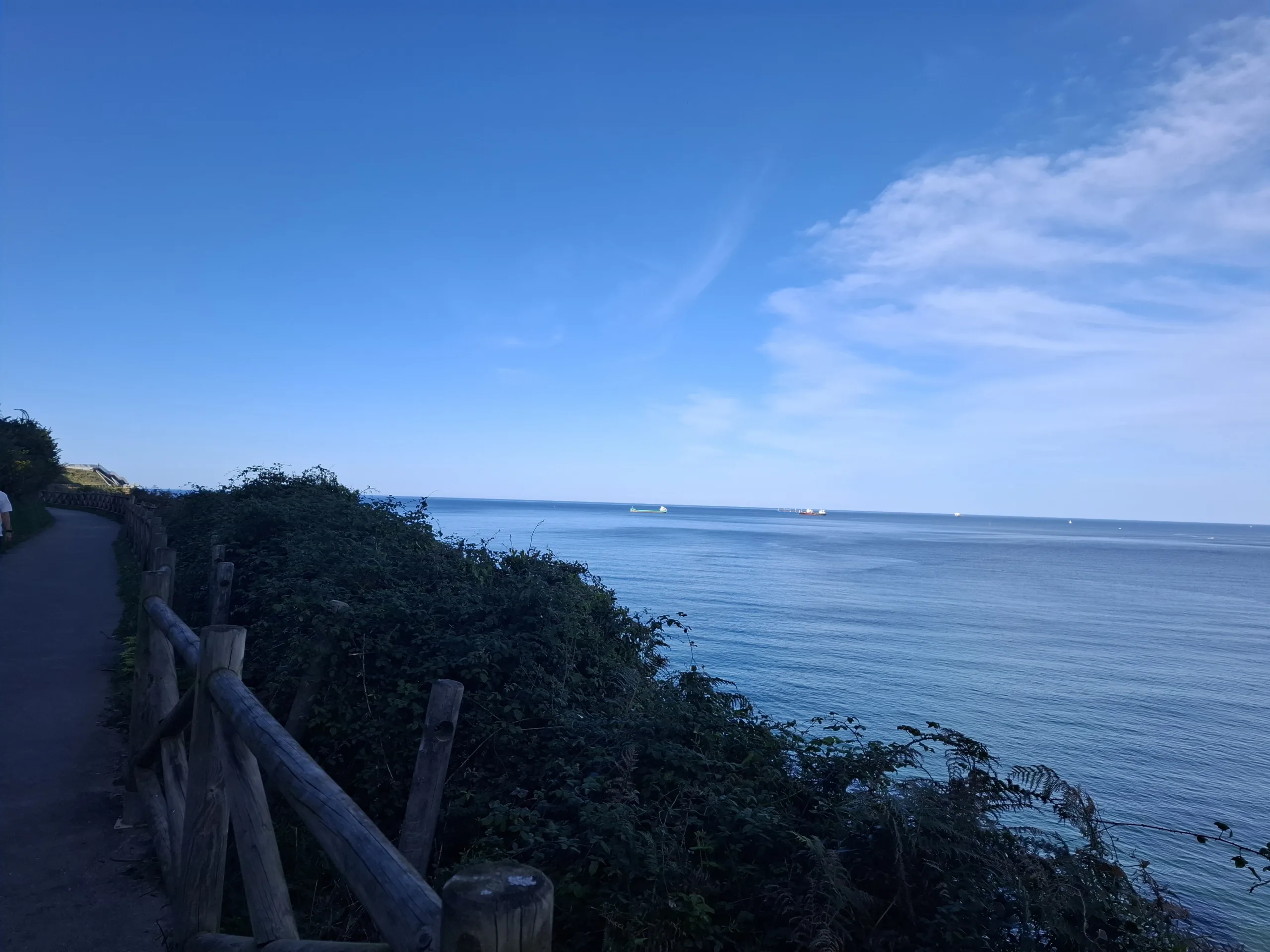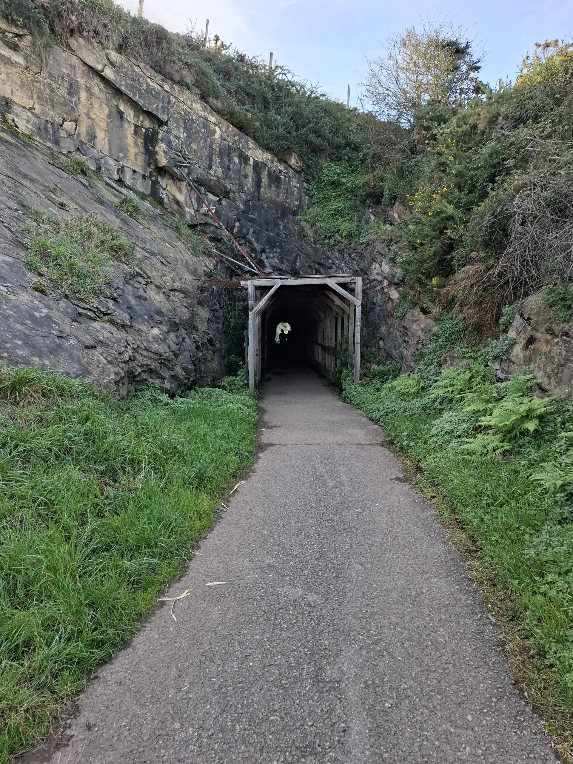 Přejdu přes pláž a vystoupán na krásnou stezku podél pobřeží. Chodí tady asi hodně lidí, protože pítka a odpočívky jsou poměrně nahusto. Pro vnitrozemce neskutečné výhledy na moře, obrovské lodě. Míjím různé pozůstatky těžby železné rudy, dokonce jeden tunel je i přímo na stezce. S relativně pofidérní výdřevou.