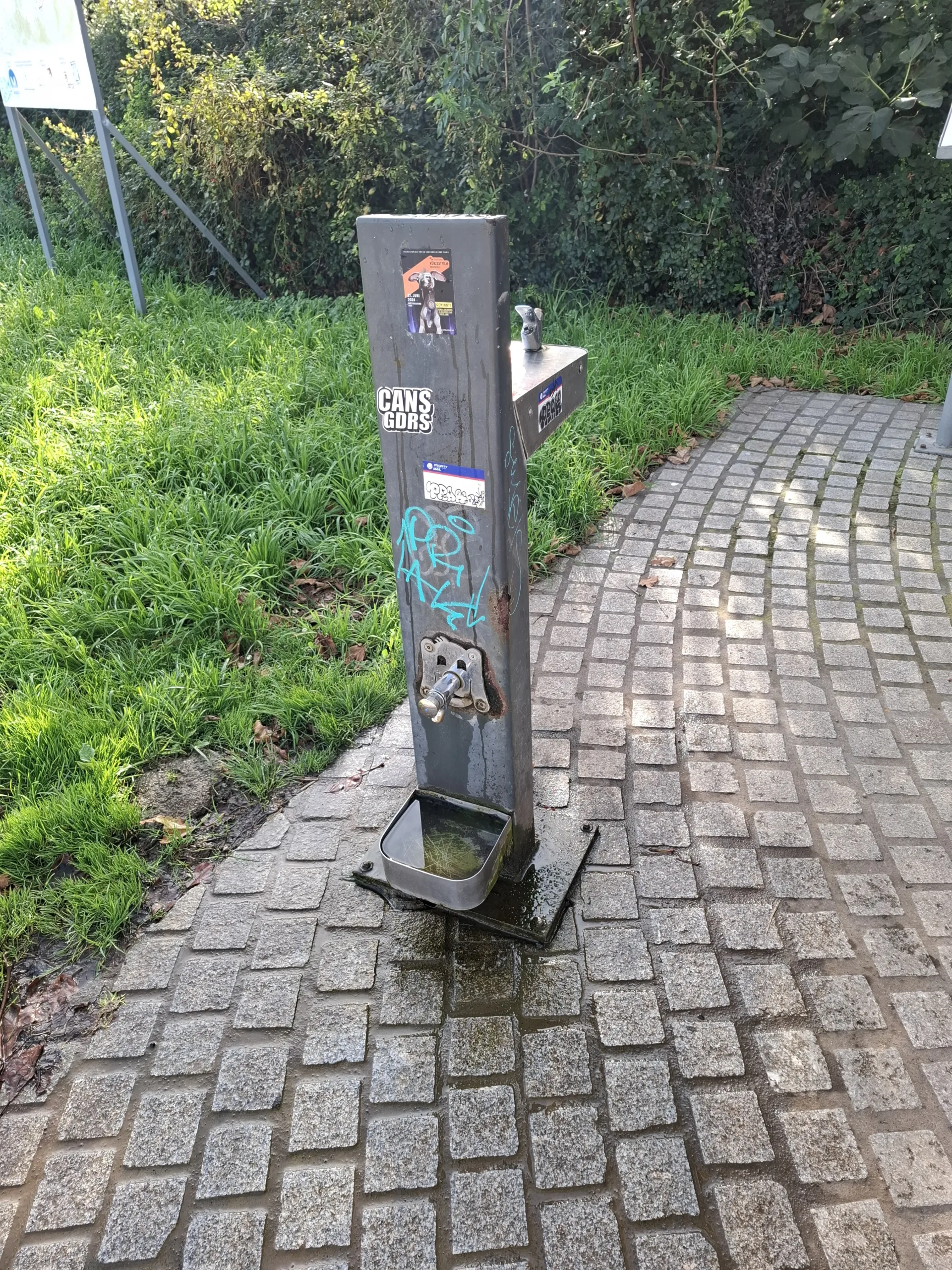 Je před obědem a lidí hodně. Cyklisti jezdí většinou ve skupinkách a pěkně svižně. V místě bývalých zastávek jsou odpočívky, kde mají na sloupku kompresorky, nářadí a další servis.