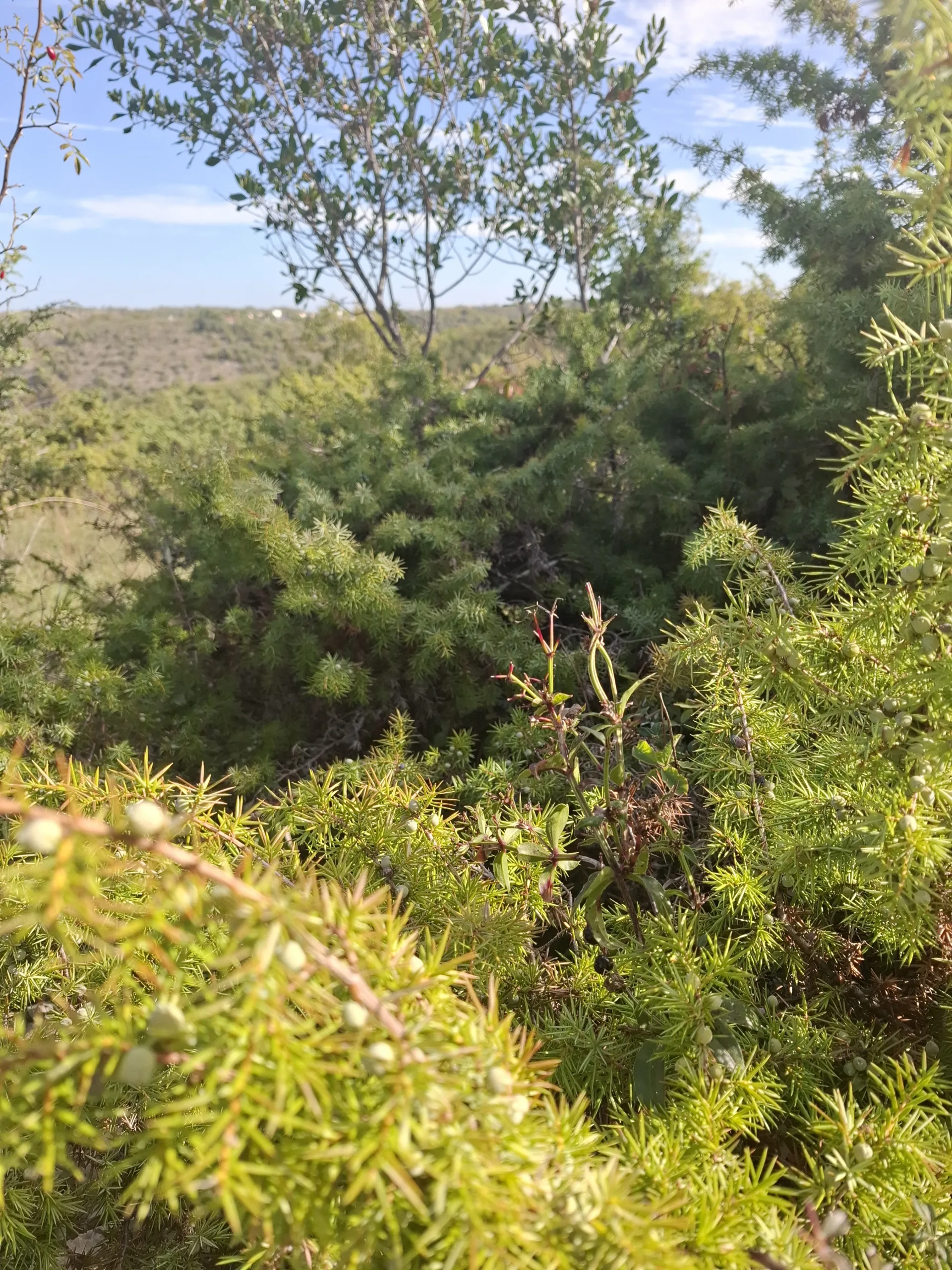 Jakoby se měnila i krajina, protože zídek ubývá, občas míjím levandulová pole, sem tam cypřiše, olivovníky. Na domcích prejzové střechy a bílé vápencové zdi. Fotím si na cestě podivného černého tvora. Vypadá jako přerostlý černý mravenec, na délku má tak 3 cm a zvedá zadeček jako štír. Rozhodně tedy nezkouším, jestli tam má schované žihadlo. Později ji google lens identifikují jako majku obecnou.
