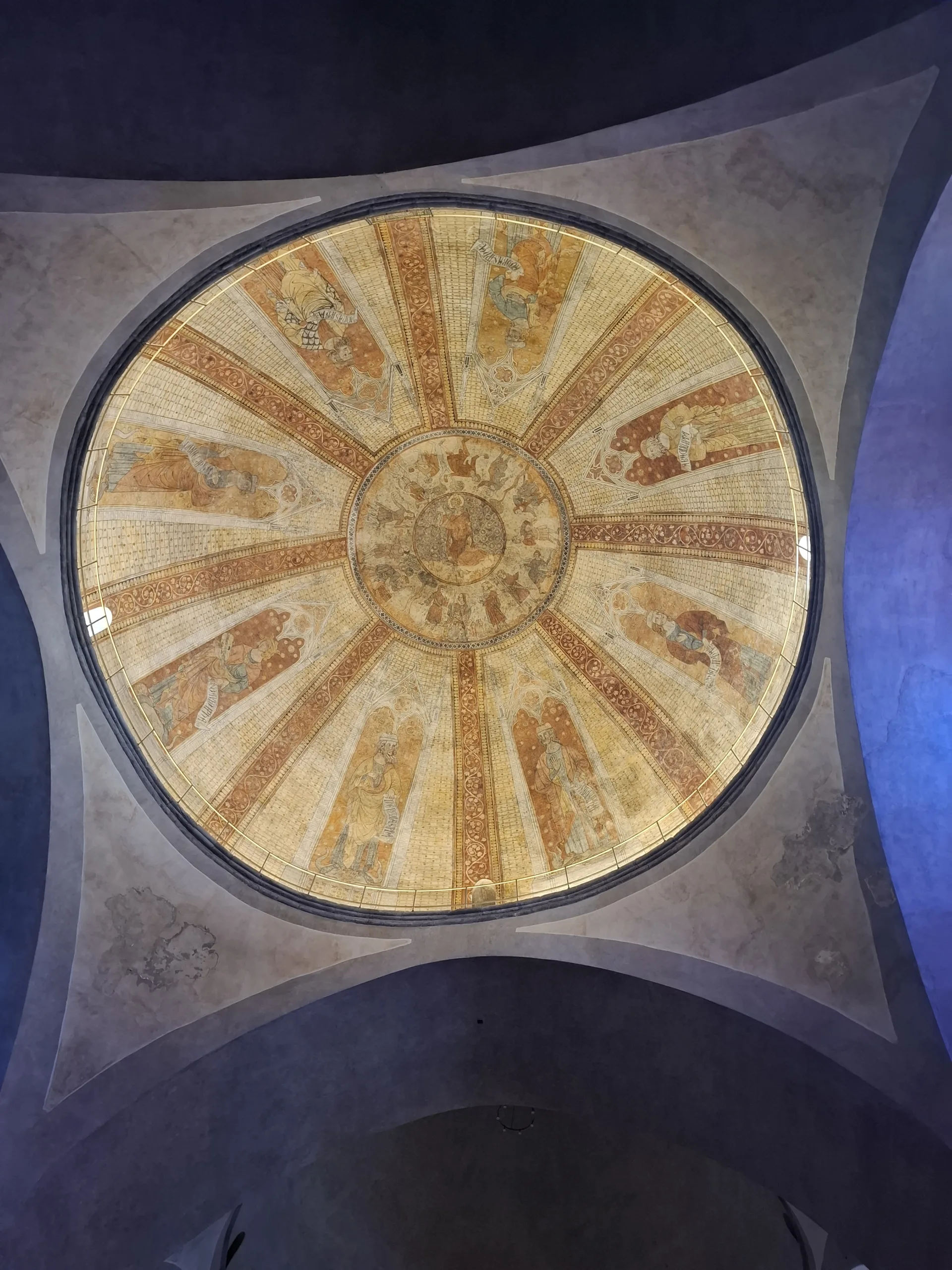 Ale vnitřek je úžasně malovaný, dokonce i na stropě svítí hvězdy.