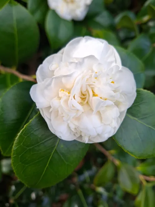 Za vesničkou La Porcia uhýbám na doufám že správnou variantu svatojakubské cesty do Tol. Tenhle kousek v mapy.cz ještě není. Na příkopem zase kvetou bílé kamelie. Jejich keř se něžně opírá o vzrostlou cesmínu. Tmavě zelené listy, velké bílé květy a uprostřed obyčejné vesnické cesty. Ještě bych je pochopil někde v zahrádce, ale takhle to vypadá že někdo prostě vyhodil kytku z auta a ona začala růst.