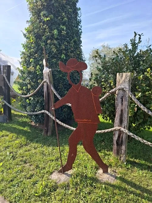 Skoro před každou vesnicí je velká La Espada -červený meč ve tvaru kříže. Tady svoje poutníčky Sv Jakub Maurobijec dobře chrání. Před novým kostelem je na každém sloupku u plotu.