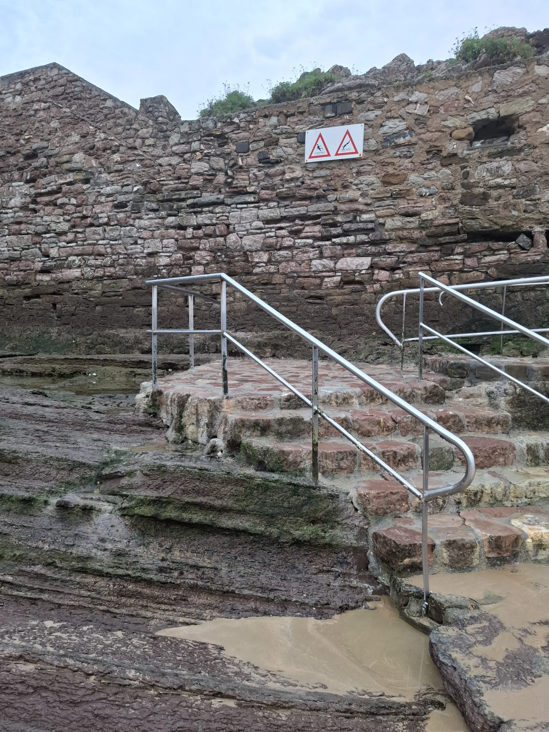 Je odliv, takže nemusím tunelem, ale jdu po pláži a skalním chodníku, který byl včera 2 metry pod vodou.