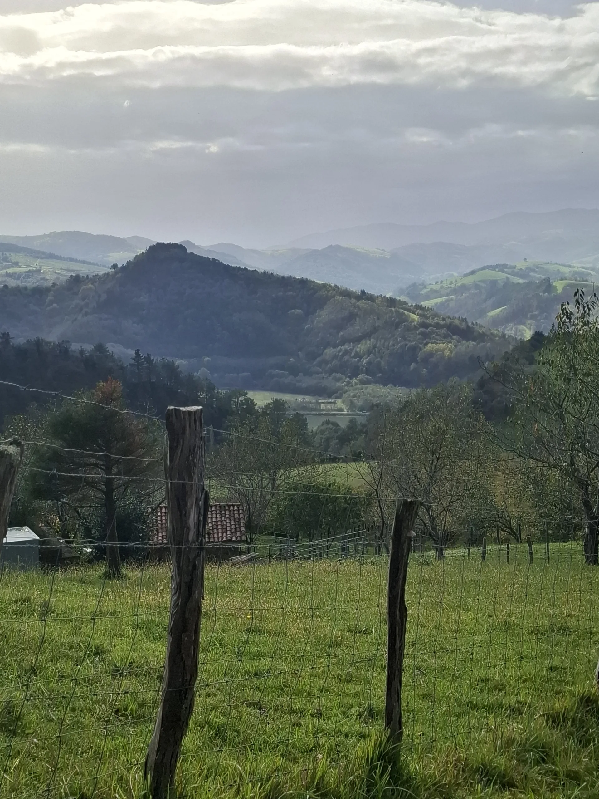 Ale dost už bylo roviny, vzhůru do kopce! V albergue vyzvednu baťoh a už to zase jde jako na střechu. Ve stoupáku se potkávám s Holanďanama ze včerejška. Jeden právě odkládá svršky, protože je sice chládek, ale kopec brutálně zahřívá . Na malé vyhlídce zastavuji „kvůli focení“ – je tu krásný výhled na Seminario Diocesano a San Sebastián. Hlavně ale chytám druhý dech.