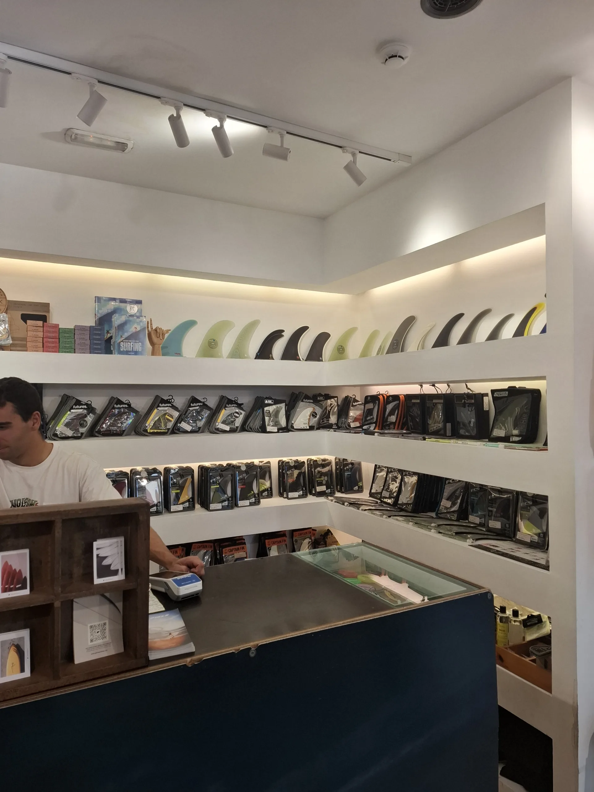 Běžné krámy drží ještě siestu. Jdu se podívat na pláž a tam jeden otevřený obchod vedle druhého. Surfy, neopremy, věci na surf, surfařská škola. V moři se válí černí tuleni, co čekají na svou vlnu.