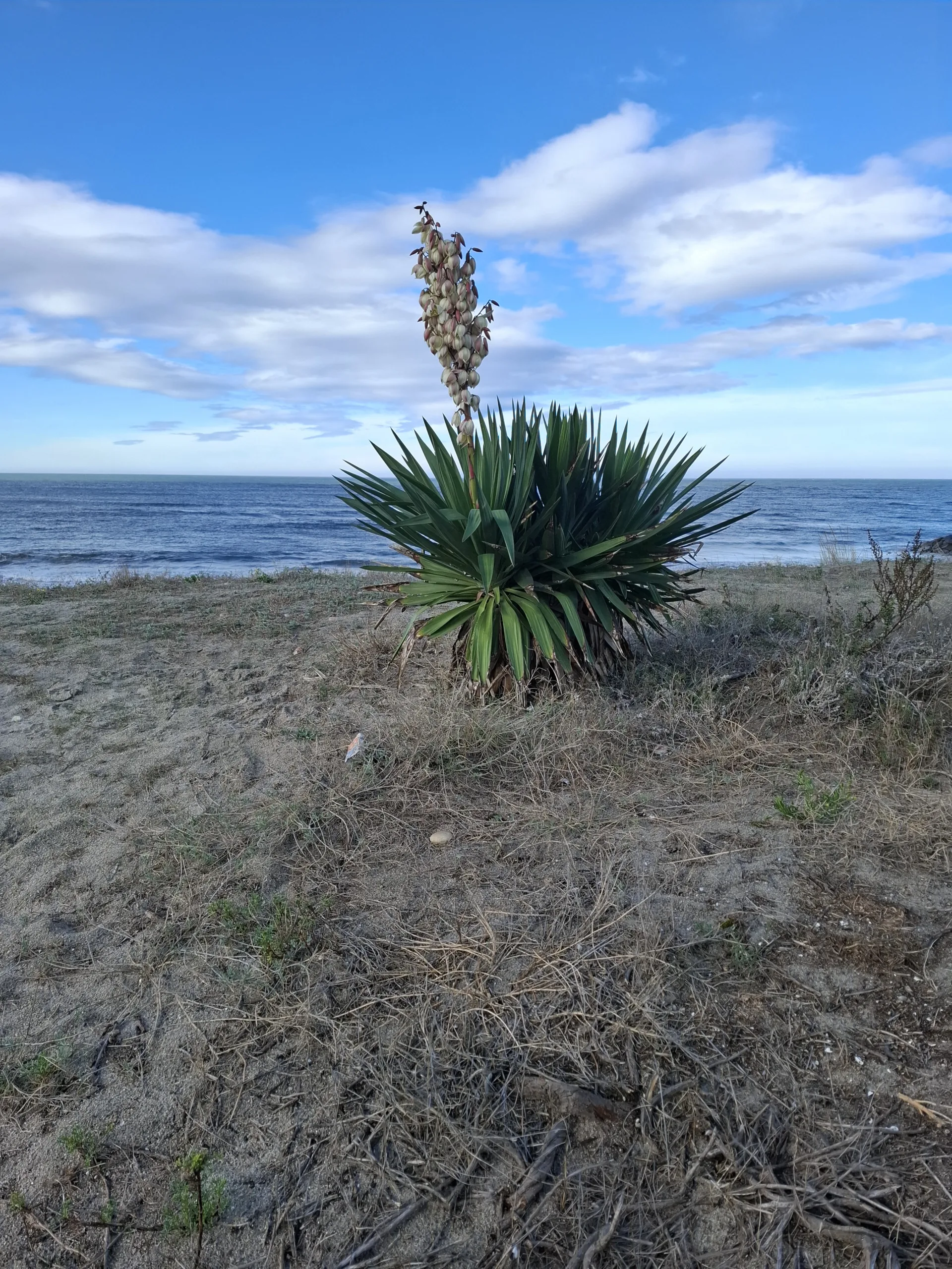 Ještě kousek podle silnice a zahýbáme doleva uzounkými uličkami k moři. Co domeček, to extra kytka. Poprvé vidím balónkovec neboli biskupské koule (Gomphocarpus physocarpus). Výstižné pojmenování, ale jestli takhle fakt vypadají, tak biskupům nezávidím.