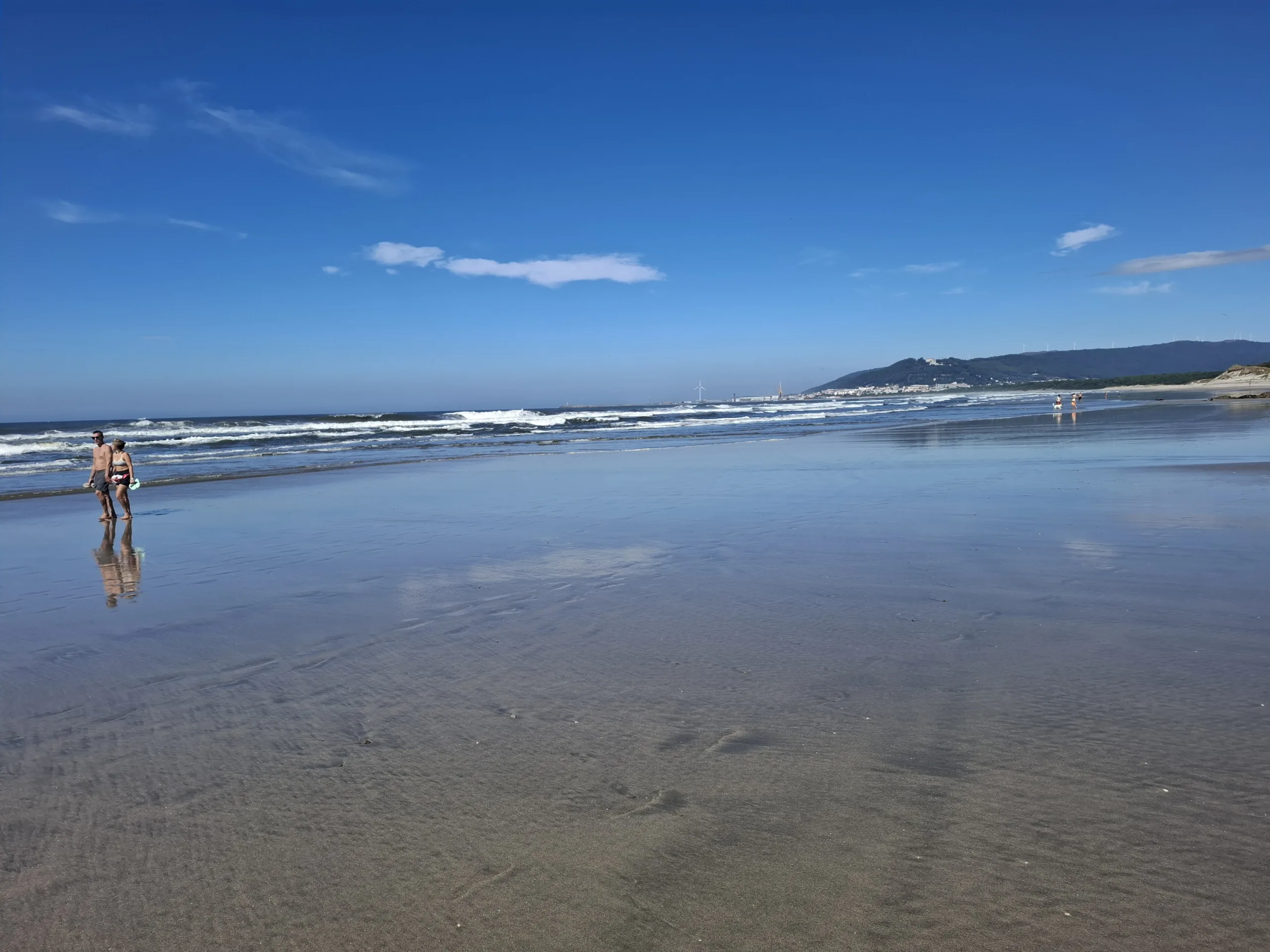 Občas míjíme procházející se lidi, někteří chodí i se psy, ale mají je na vodítku. V dálce se pomalu vynořuje město Viana de Castelo,