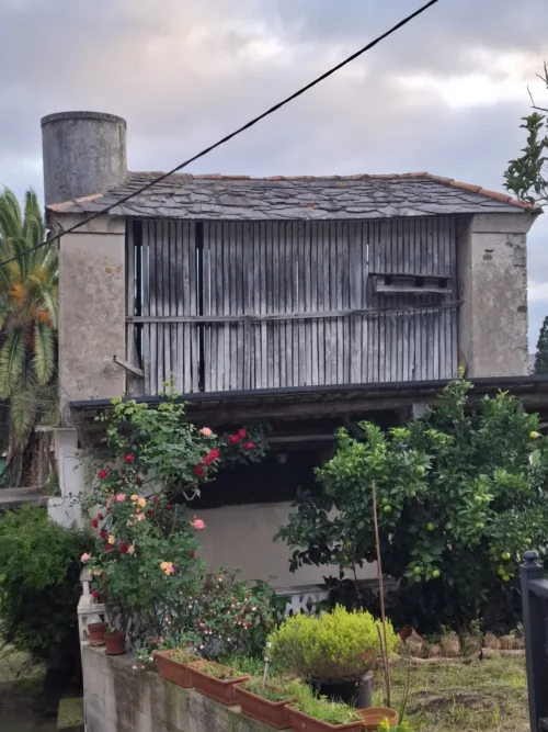 U jedné staré dřevěné horreo je krásně vidět její lehce rozebíratelná konstrukce. Staré dřevo voda a vítr natvarovaly do fantastických útvarů. V bývalé zahrádce roste fíkovník s největšími a nejsladšími fíky, jaké jsem kdy jedl. Jsou velké jako moje dlaň a chutnají po lesním medu. Škoda, že si nemůžu vzít roub na ten můj domů.