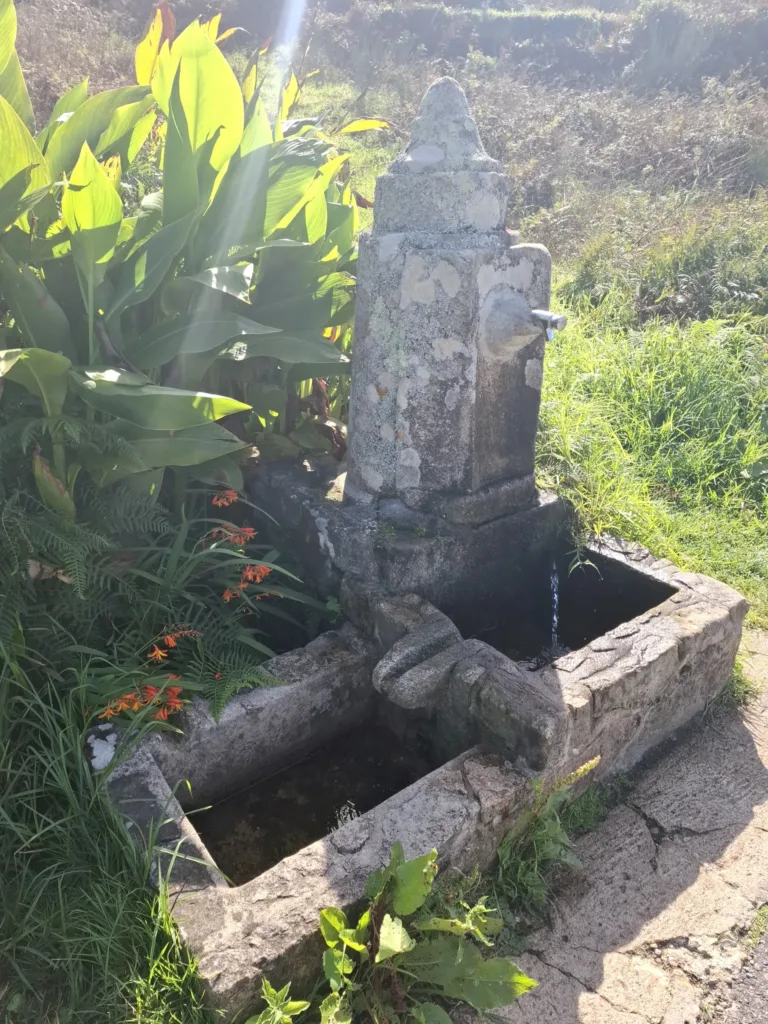 Podél cesty se objevují typické galicijské patníky s kilometrovníkem, tedy spíše metrovníkem. Ukazují přesnou vzdálenost do Santiaga de Compostela v metrech.