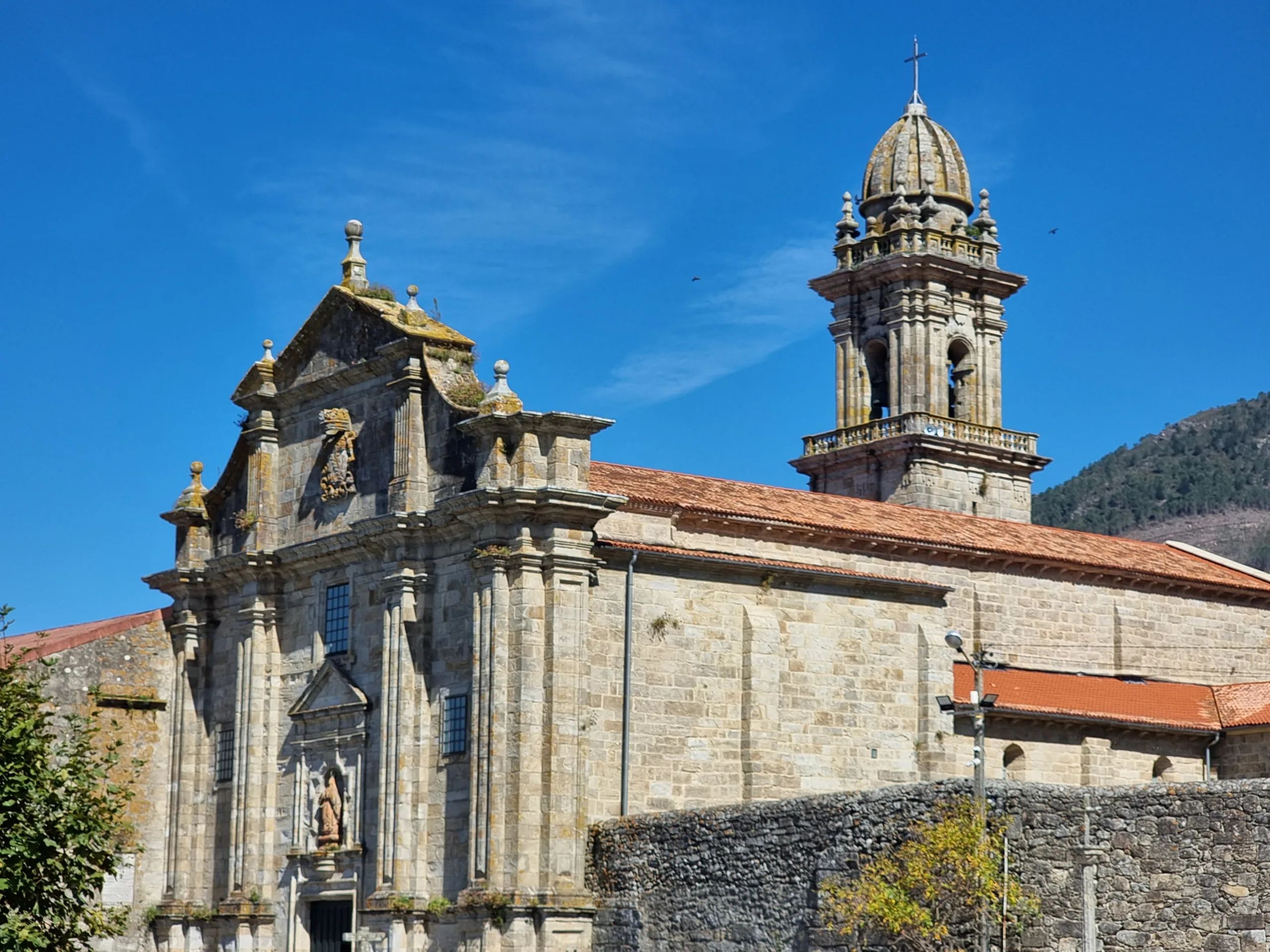 Tady má být i velký klášter Igrexa de Santa María de Oia, takže sázka na jistotu. Míjíme před ním pár bister, kde si poutníci dávají sváču a žene nás představa pořádného španělského oběda. Ale ouha. Bary jsou zavřené, infocentrum taky, asi šli všichni domů jíst.