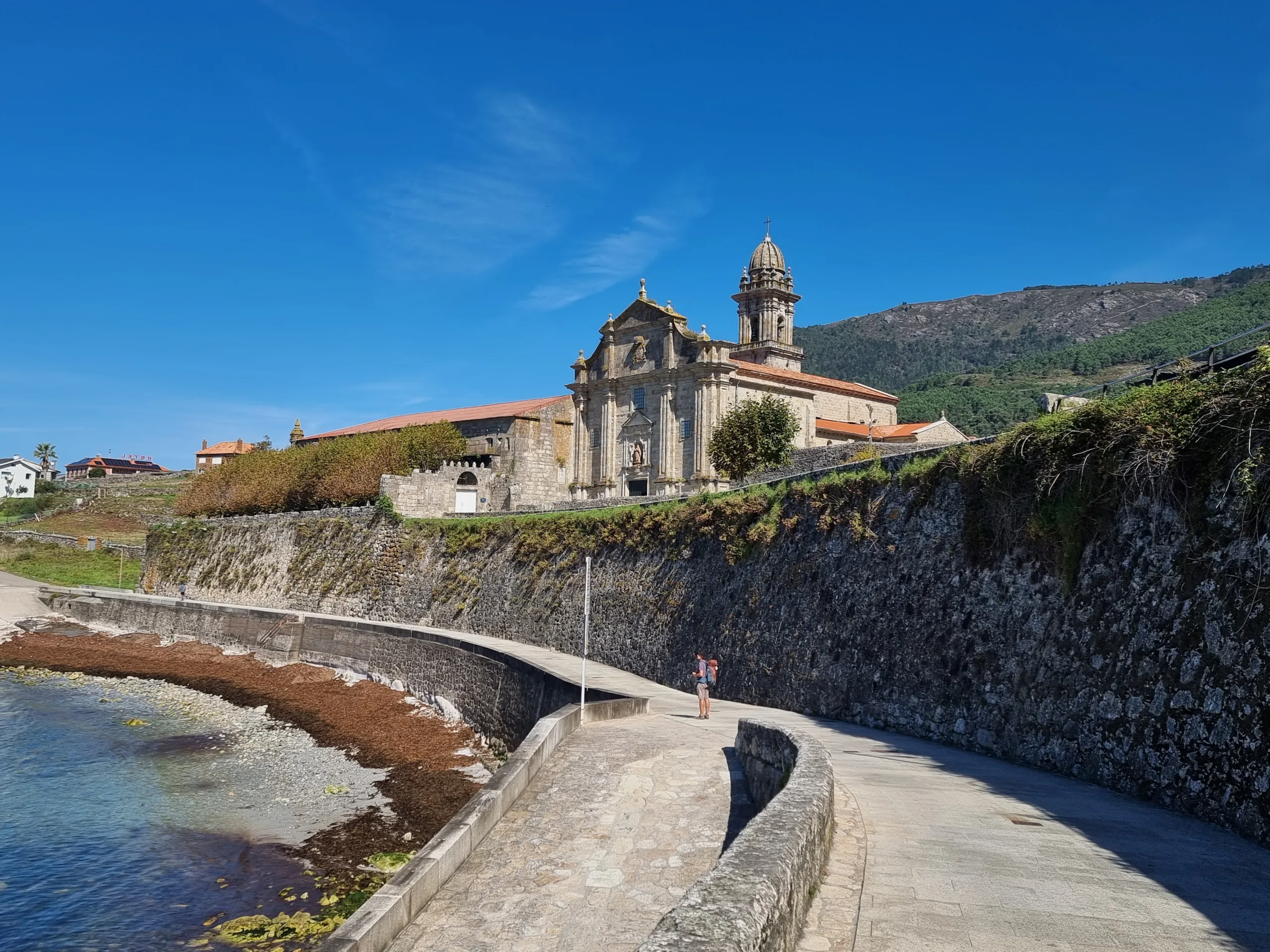 Z městečka pokračujeme krásnou širokou cestou podle moře. Když chvílemi musíme na silnici, tak je i na ní vyznačený široký pruh jen pro pěší. Prostě Galicie. Sluníčko začíná připalovat a jak se blíží poledne, začínáme hledat nějakou přívětivou hospůdku.