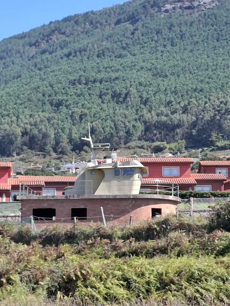 V čekárně přívozu platíme 12 EUR na osobu. Chtěl jsem Zuzce dopřát malý výlet na ranním moři, takže objednávám delší trasu trajektem kolem poloostrova přímo do španělské města A Guarda. Ušetříme tím kopec nad městem, pokocháme se ranním sluníčkem a výhledem na městečko. No, když si člověk dělá plány, pánbu se směje.