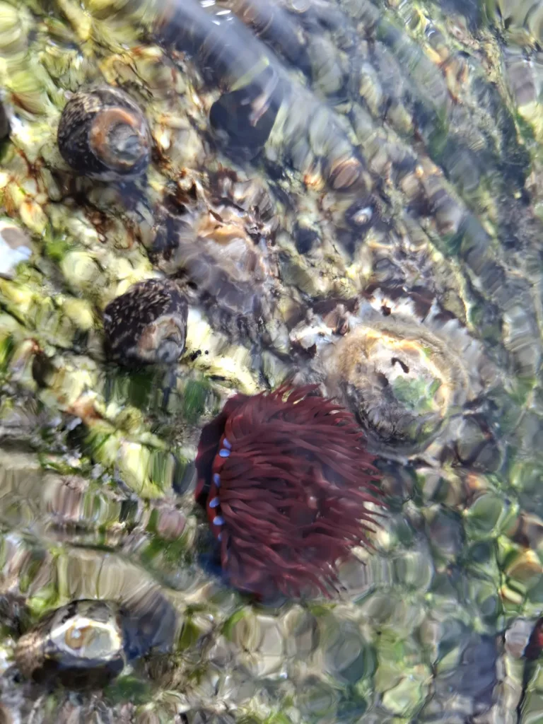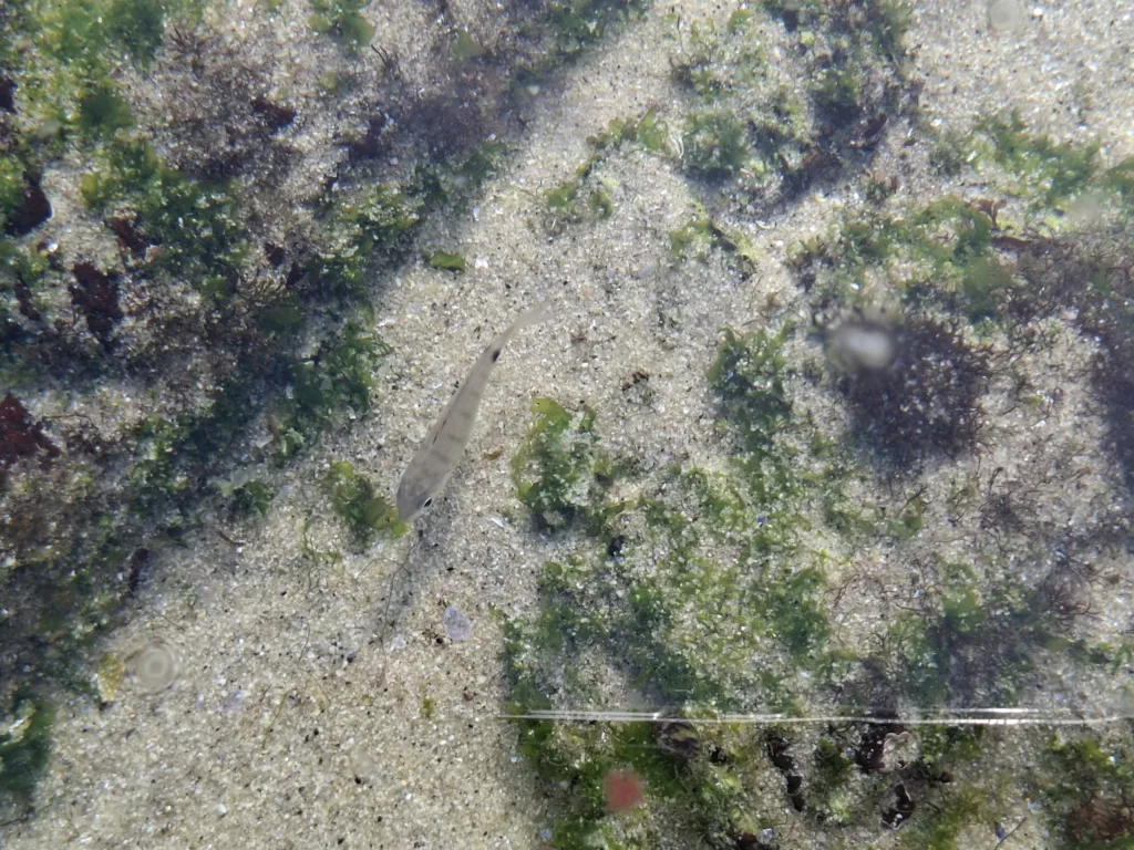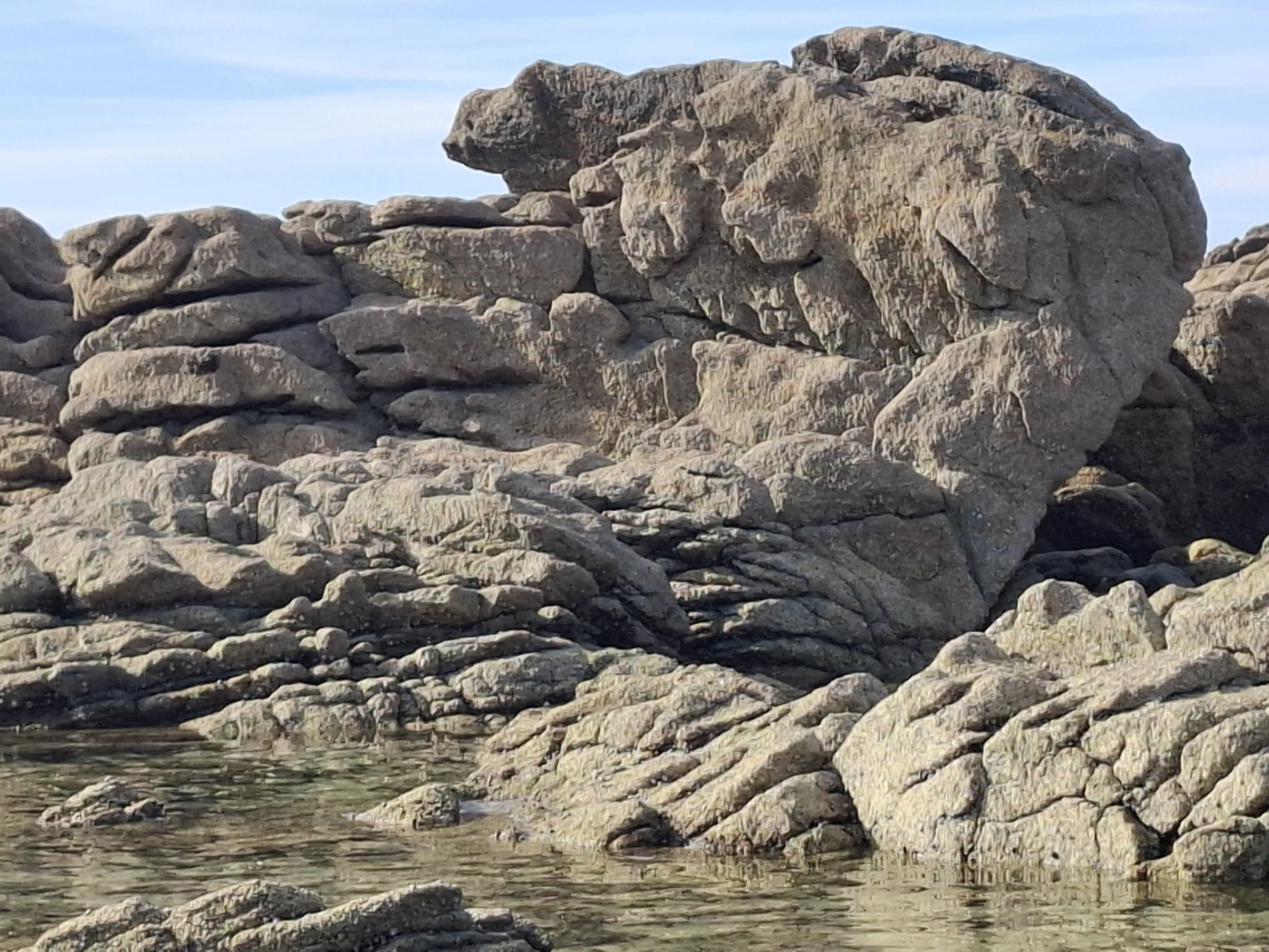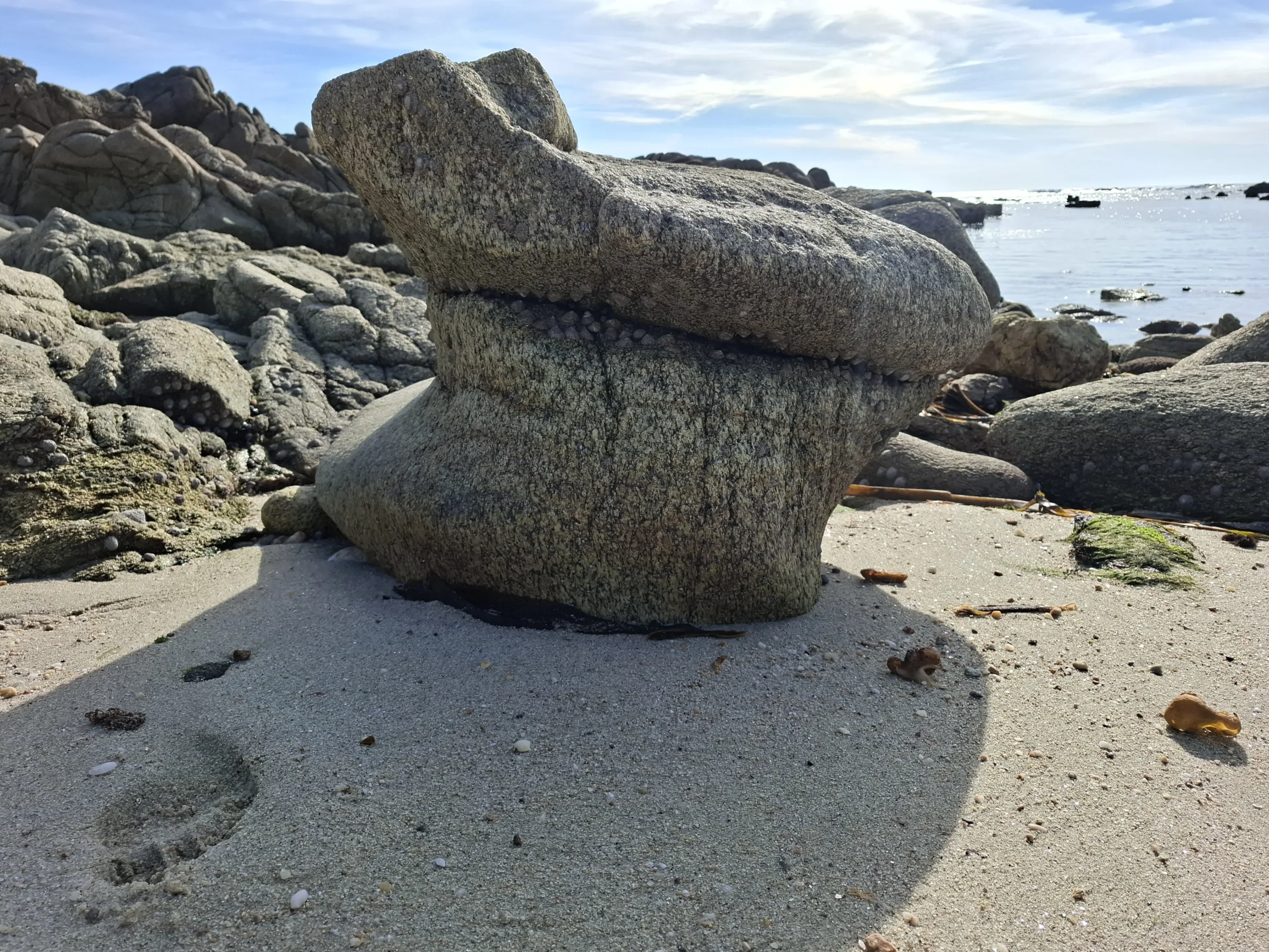 Zajdeme ještě na kamenitou pláž kousek od hospody. Tvoří ji ohromné balvany tvarované mořem. Mezi nimi malé písčité miniplážičky, kde si necháváme omývat nožky teplým oceánem. Rejdí tu spousta drobné žoužele, že se jeden skoro bojí pohnout.