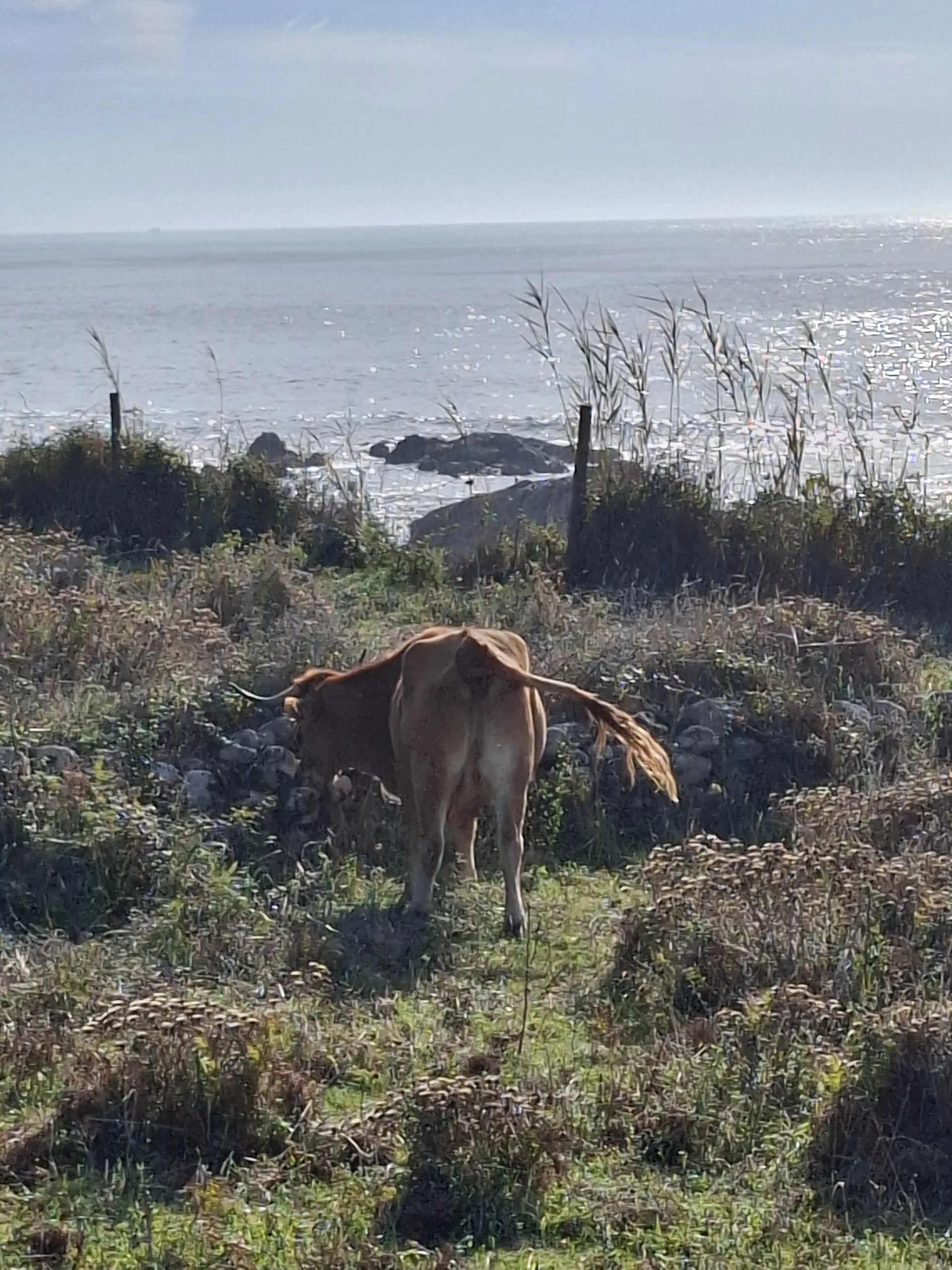Bonbónek ani čokoládu nechce, lyžuje pomalu štěrkem a sluníčko do nás peče, až se nám z hlav kouří. Jediné co ji udržuje v pohybu je nutnost občas vyhledat klidné místo, ale většinou to je planý poplach. Legrace je, že když je k dispozici záchod v civilizaci, tak to nejde. Ale pichlavé hlodašové houští protahované mořským větrem, to je jiná káva.