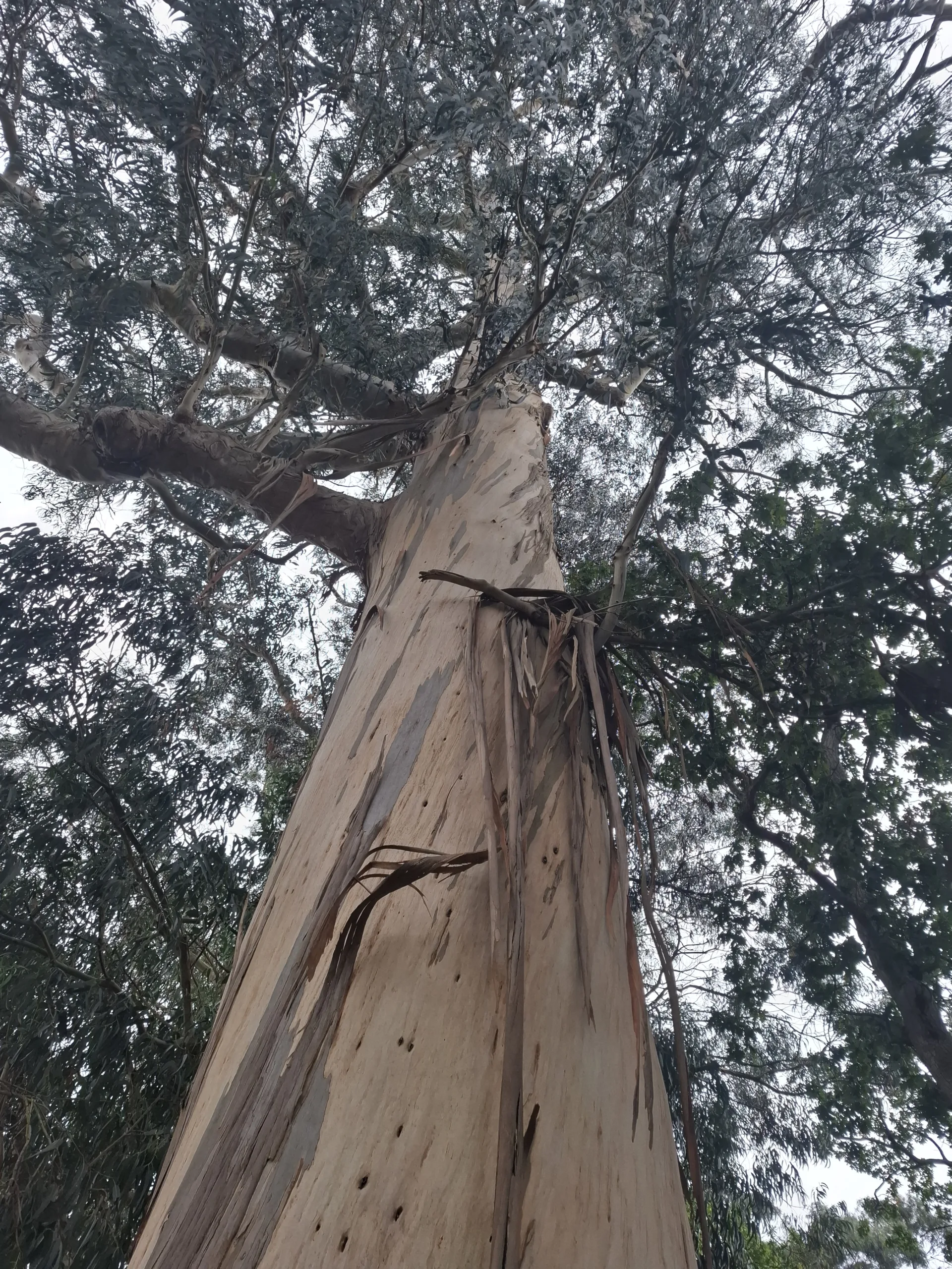 Lemují silnici před novorománským kostelem Iglesia de Jesús de Nazareno. U paty mají snad tři metry v průměru a výšku odhaduji minimálně 40 metrů. Jako lodní stožáry, krásně rovné a hladké. Tenká borka se z nich loupe v dlouhých pruzích. Nechtěl bych pod nimi stát, když začnou padat plody. Ty vypadají jako tvrdé knoflíky se čtyřmi dírkami, ale z té výšky mohou rozbít přední sklo u auta jako nic.