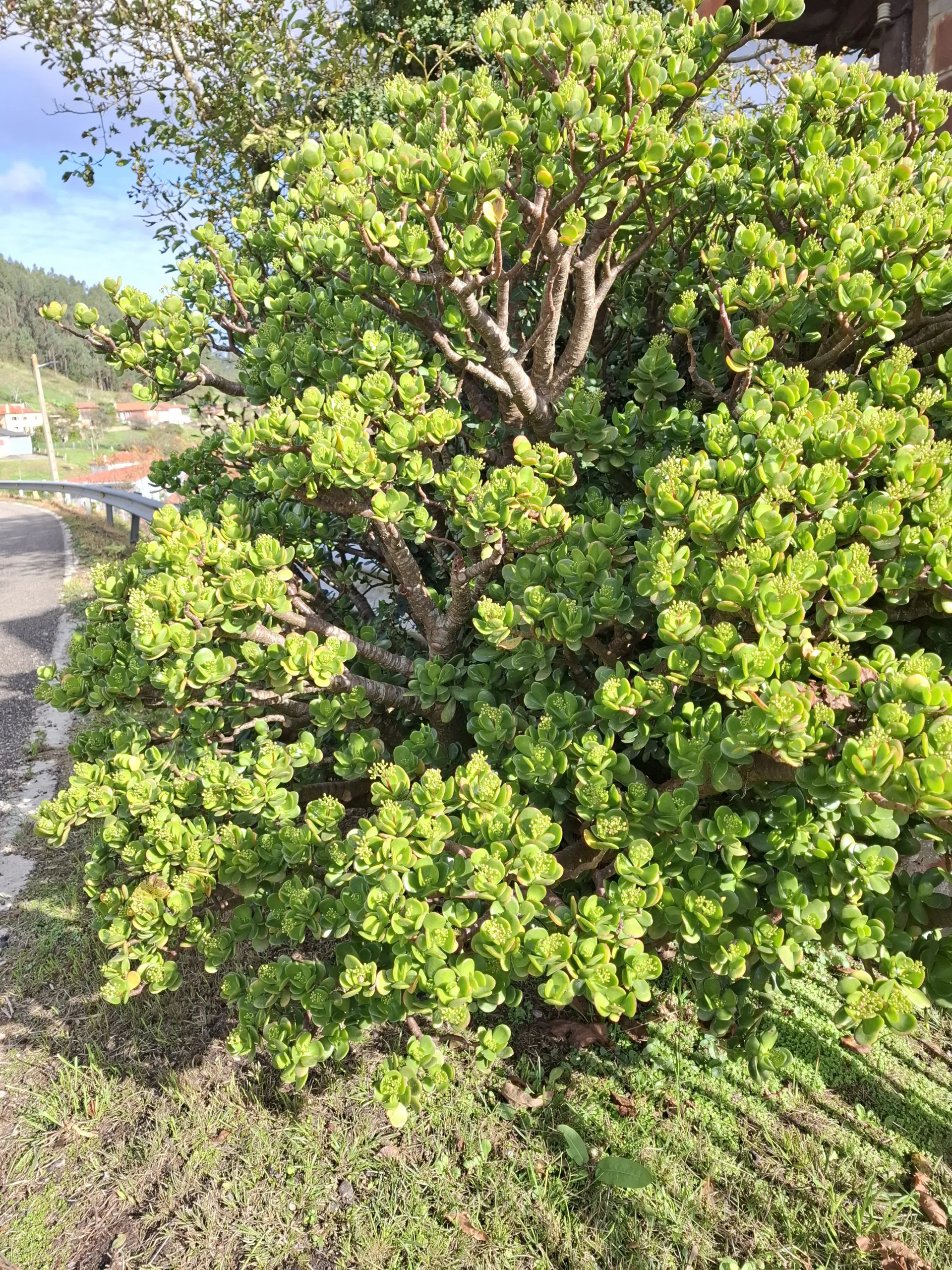 Před městečkem Soto de Luiña se musím zastavit u tlustice před vraty. V Čechách ji máme v květináčích, ale tady je snad 3 metry vysoká a kmen má dole tak půl metru. Říká se jí také strom peněz, tak tady musí bydlet miliardáři, jestli fakt přináší štěstí a hojnost.