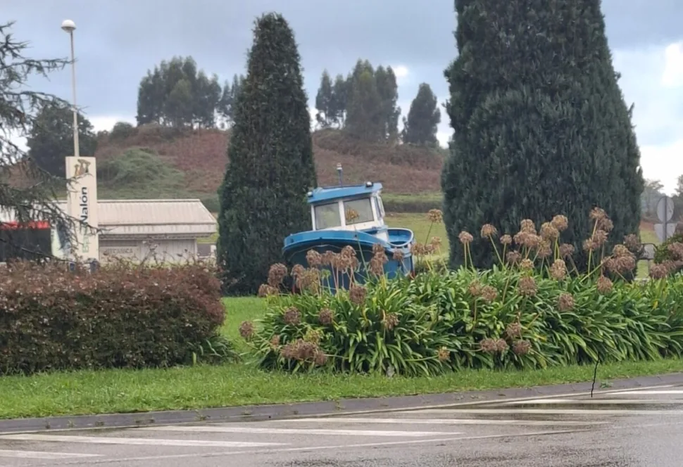Na kopci u velkého kruháče s vyvrženou lodí uprostřed svítí cedule Bar Stop Soto del Barc.