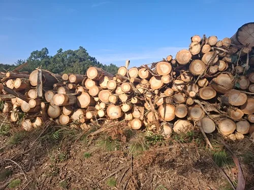 Co je zajímavé, že kolem jsou původní dubové lesy. Dokonce i houby tu rostou. Vypadají jako lišky, ale čert jim věř. Zřejmě se tu eukalyptové plantáže teprve začínají vysazovat. O kus dál míjím jednu čerstvě sklizenou plantáž a oni tu eukalypty opravdu pěstují jen na celulózu. Někde psali, že dokážou vyrůst až 4 metry ročně a podle toho to dříví vypadá.