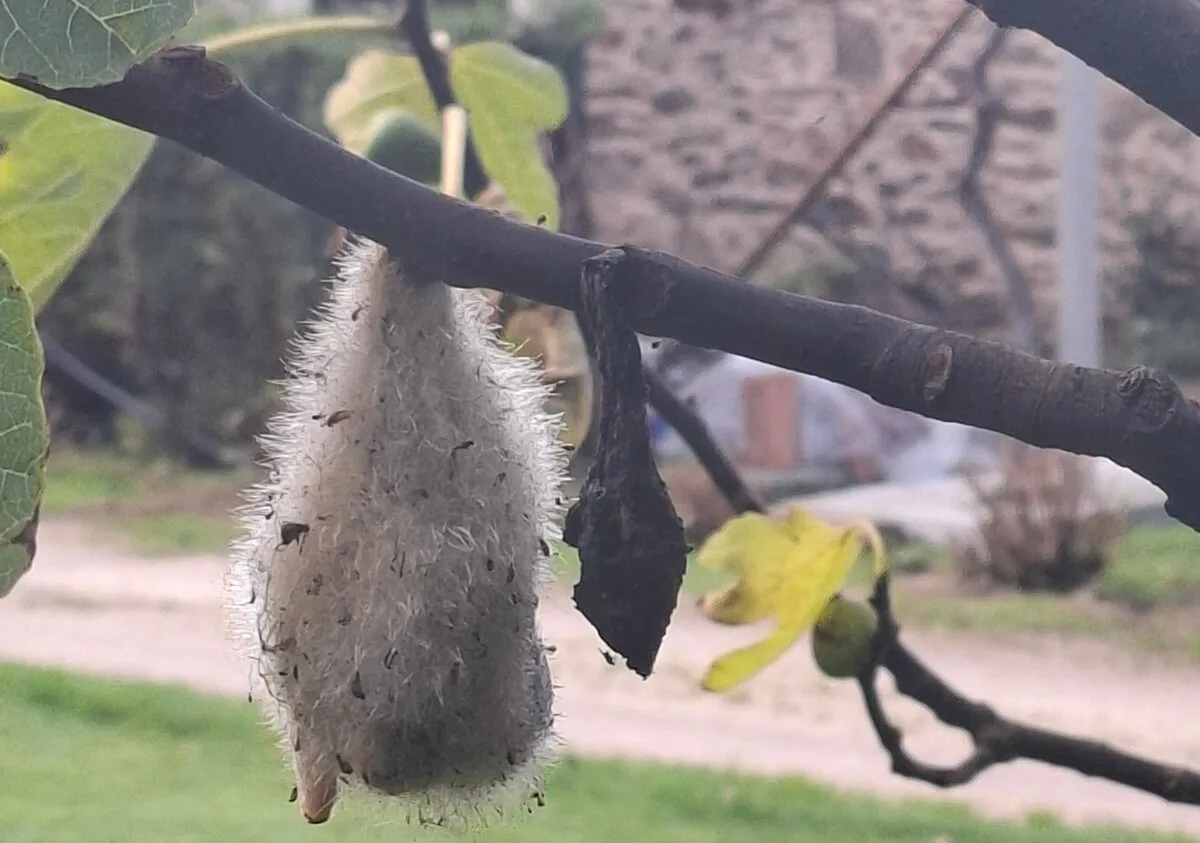 Šlapat jen po silničkách je docela nuda. Jedno z mála rozptýlení mi dala malá zahrádka. Kvetly tam podivné stromky, co měly květy jako růže. A nádherně plesnivé fíky. Visí na větvích jak chlupatí netopýrci.