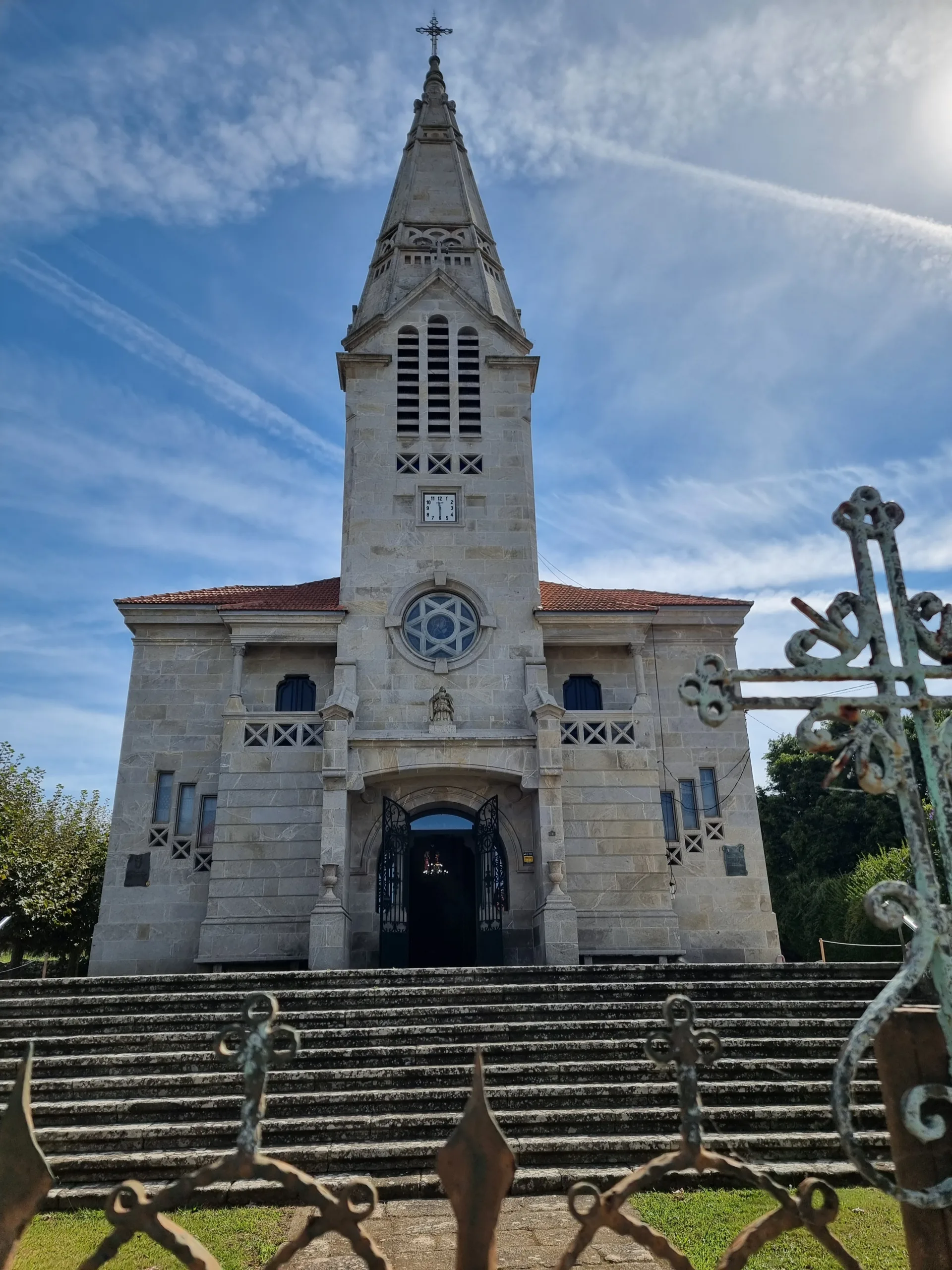 Skočím si ještě do kostelíka Igrexa de Santa Cristina da Ramallosa. Moderní , čisťounký voňavý kostel. Vůně šla z ohromné kytice růží ve španělských barvách, která byla naaranžovaná před stolem Páně. Moc pěkně se v něm sedělo a děkovalo.