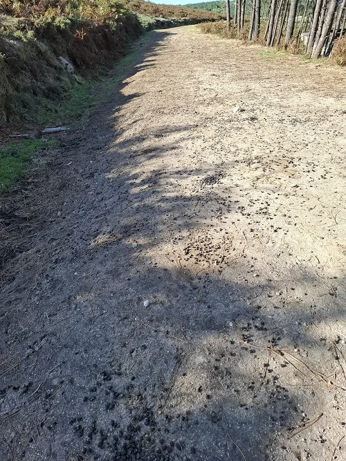 Míjíme velkou farmu zašitou v lese. Cesta je pokrytá miliony ovčích bobků. Sem tam ji dozdobí koláč od krávy a koňský kobližek. Psi na farmě řvou jak ztrhaní a jeden ratlík to vypálí rovnou za námi. Zpoza velkého šutru nám nadává co mu plíce stačí. Jak odcházíme, tak se vítězně vrací na dvůr – zahnal vandráky a je celý!