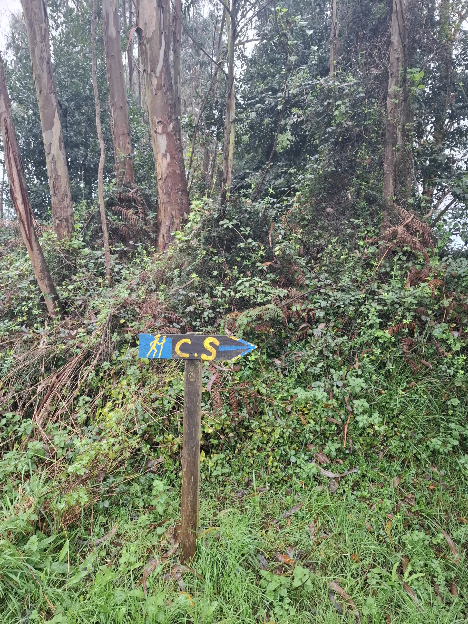 Kupodivu tu necítím ten strašný pach – zůstal v Gijonu. Jdu po široké krajnici podél rušné silnice. Značky pro poutníky namalovali rovnou na asfalt. Dělím se o ni s cyklisty, naštěstí se dokážou rychle vyhnout.