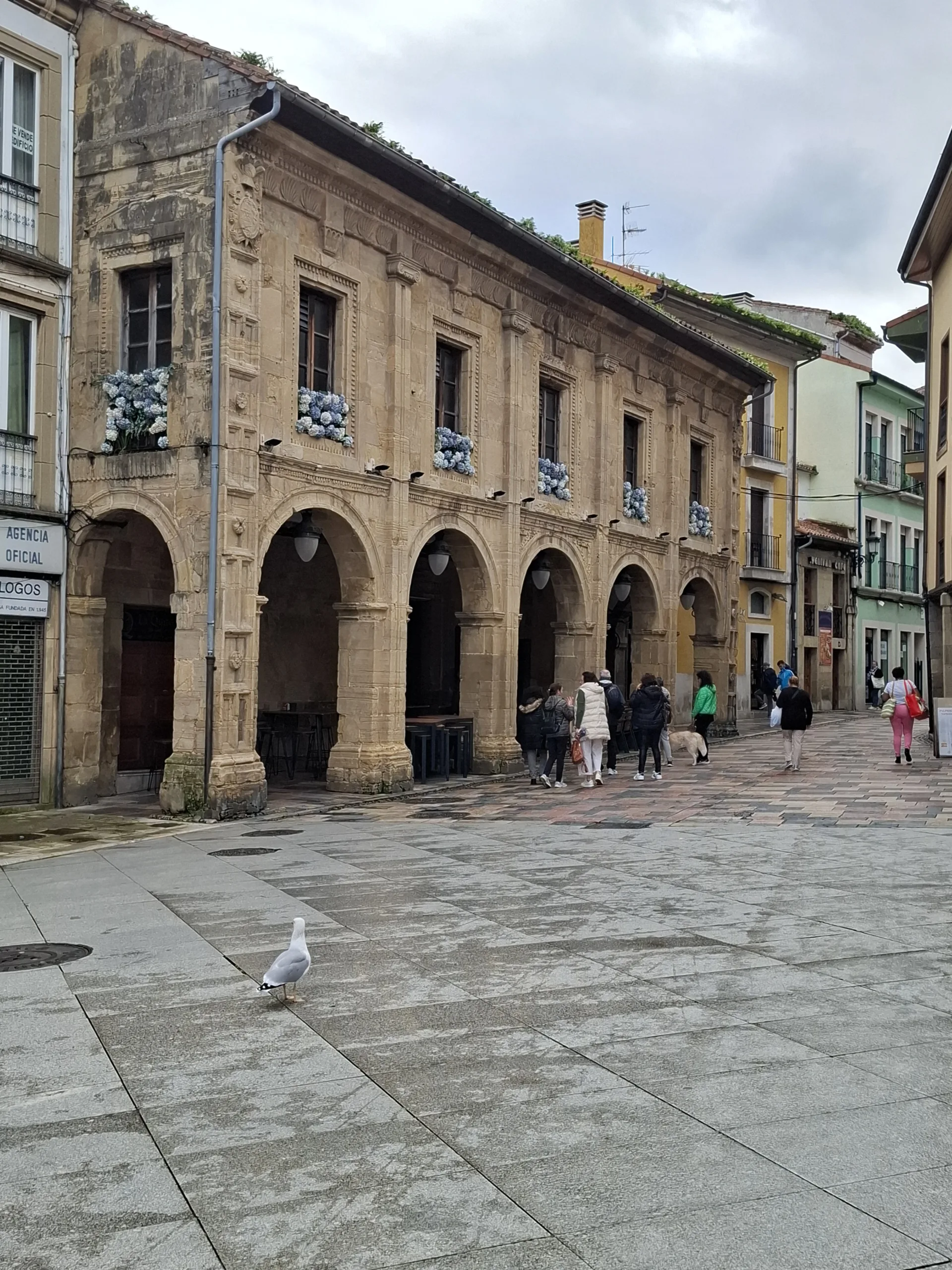 Je zajímavé jak málo lidí je na ulicích. Jestli to dělá občasný déšť nebo pracovní den. Jen racek na slunečníku sledoval, co si kdo objedná. Aby měl oběd z první ruky. Kostely taky zavřené.