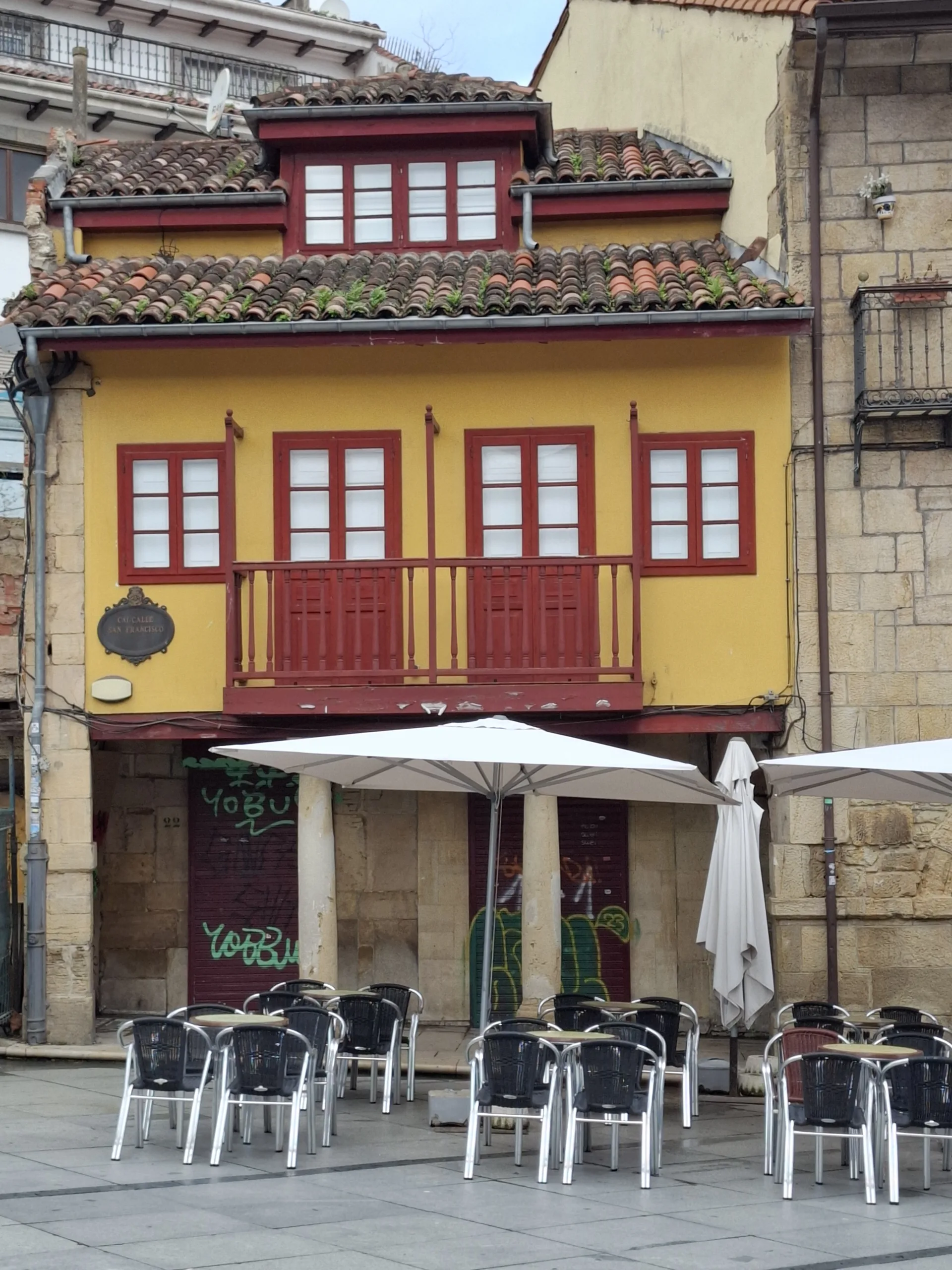Přejdu krásně zelený kopec s políčky a horreas. Pod kopcem začínají dlouhá předměstí Avilés s dalšími železárnami. Teď už chápu, proč se v Gijónu vyplatilo stavět odbornou školu pro tisíc sirotků po dělnících z fabrik a uhelných dolů. Stejná atmosféra jako když jsem kdysi za sociku procházel Ostravou.