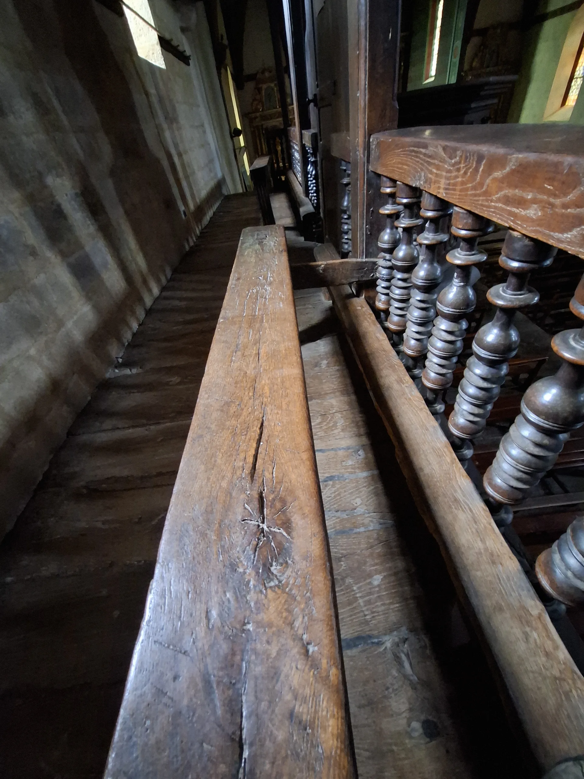 Zlacený oltář kryje největší mušle, jakou jsem kdy viděl. A na galeriích tu a tam visí děkovné modely lodí. Moře už je nedaleko a spousta místních mužů na něm zřejmě sloužila. Mimochodem ženy sedí vždy dole a galerie jsou pro muže, aby je při bohoslužbách neobtěžovali.