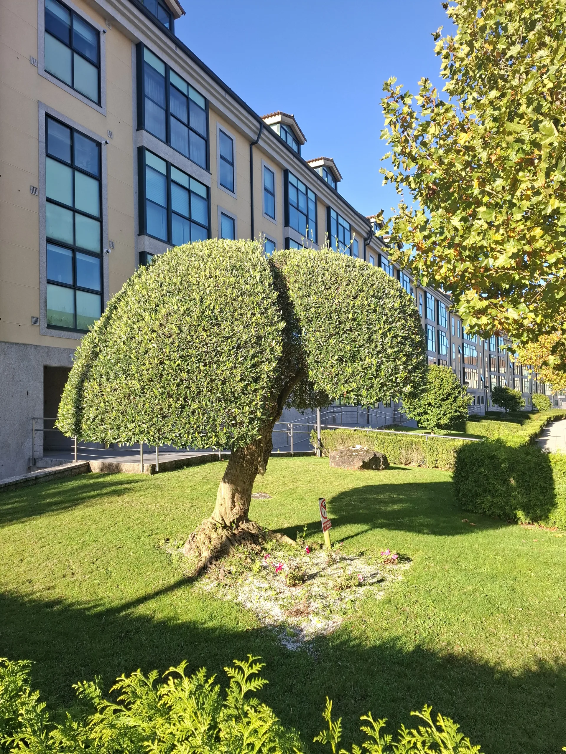 Nakonec zastavíme v restaurante Xantar na masovou empanadu a dvě espresa. Nerudný majitel má na zahrádce velkou ceduli, že Tady se smí sedět jen 15 minut a taky nás po této době „nenápadně“ vyhání. Asi zahajuje siestu. Hned vedle je krám s vozíky pro invalidy, elektrickými postelemi apod, takže nabízím Zuzku jako figurantku pro reklamní jízdu do středu Santiaga. Ale je prý ještě moc živá, takže to musíme došlapat sami.