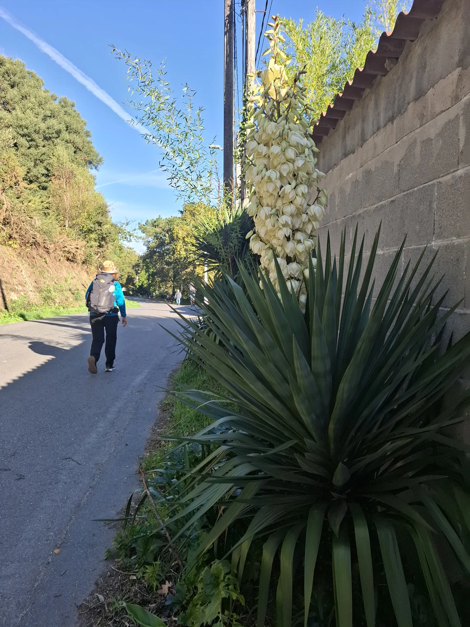 Jak se rozednilo, tak přibylo poutníků a je těžší trefit mezeru v zástupu na klidné vykonání potřeby a ještě najít dostatečně hustý lesík. Za obrovským eukalyptem kus od cesty bylo vidět, že je to velmi oblíbené místo. Většina uživatelů se ani nenamáhala něco zakopat, jak velí slušnost, takže podpapíráků bez papírů jak nastláno. Místo bylo kryté pohledům jen z jedné strany, takže mám kliku, že zrovna procházela parta mladých a ne autobus jeptišek.