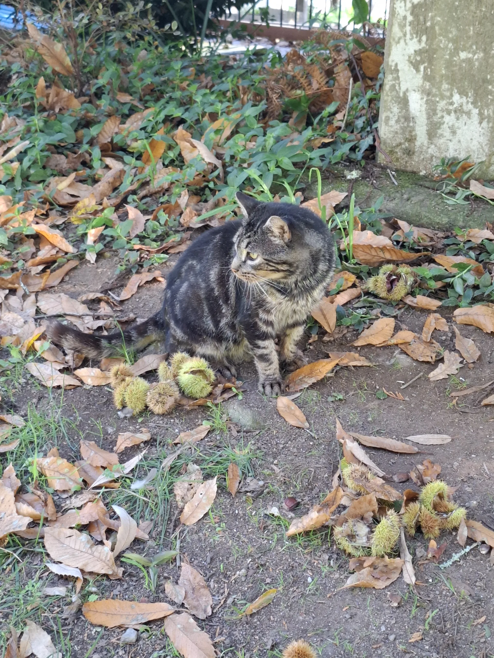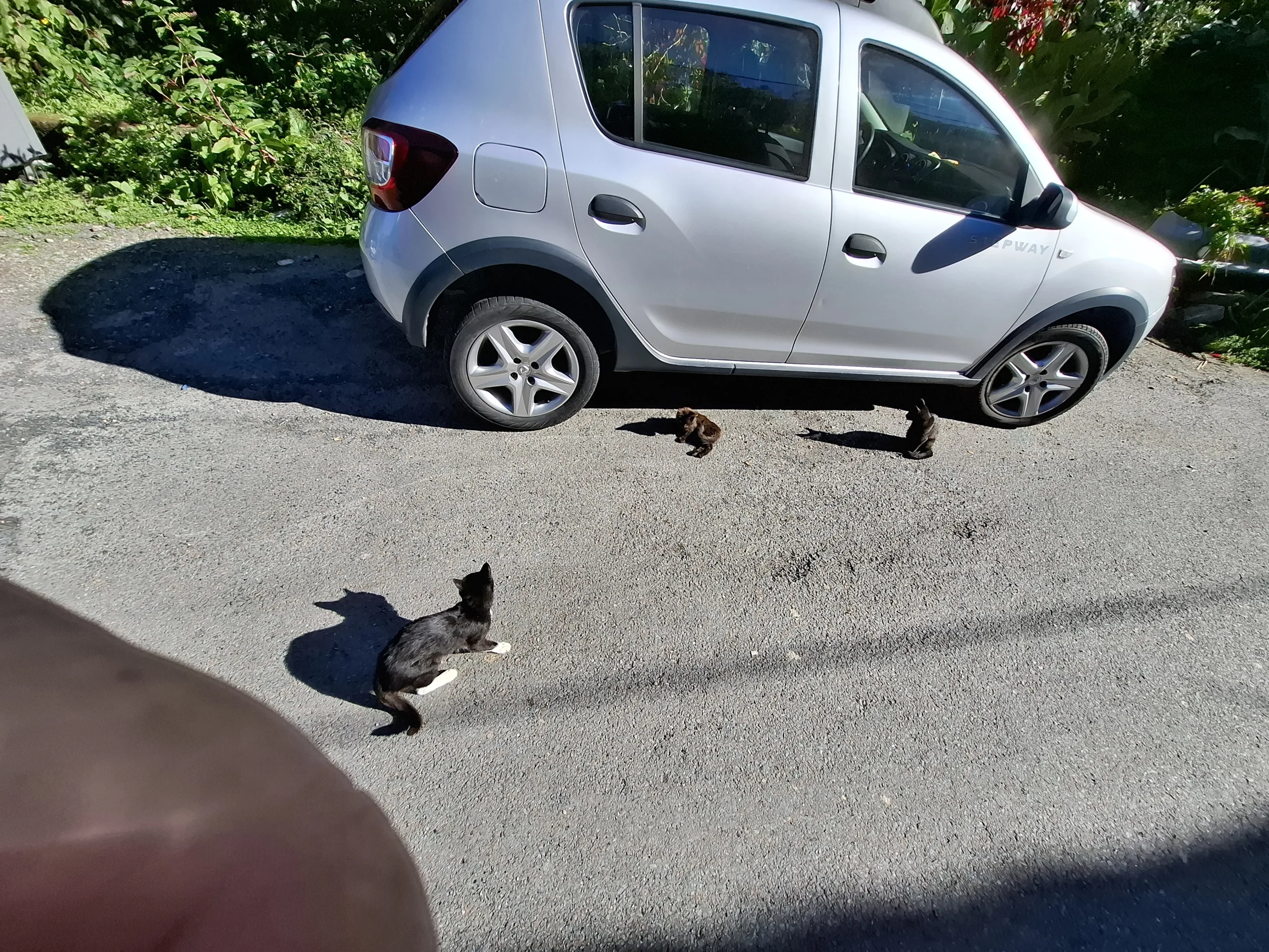 Zatímco ve tmě čekám, začne se mi o kotníky otírat něco chlupatého. Malá hubená kočička, takové odrostlé kotě, přede a nechá se hladit. Vyndavám z baťohu kousek choriza, krájím ho na malé kousky a minda se cpe jako nezavřená. Skoro vidím, jak jednotlivá sousta putují tělíčkem. Asi ji stará kočka nedávno vyhodila z domu, ať se stará sama o sebe. Tak dělá co umí. Zajímavé je, že nechce jít s námi. Jen si sedla doprostřed cesty, umývá se a čeká na další oběť.