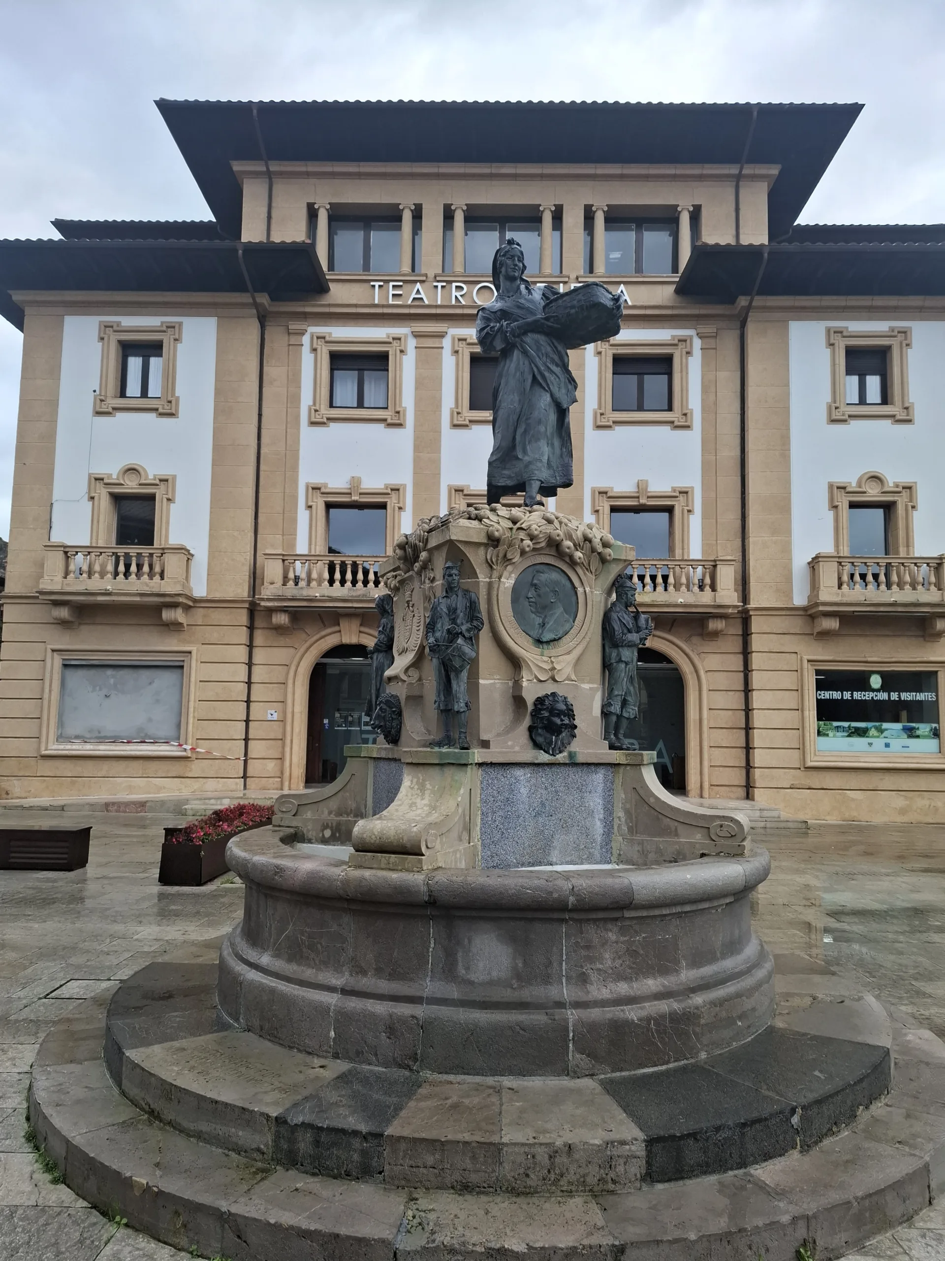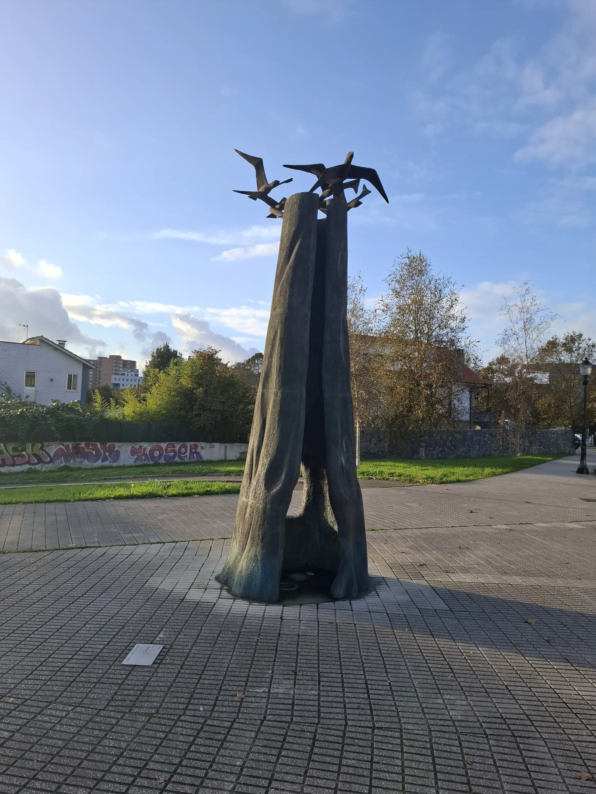 Z dálky vidím věž komplexu Laboral ciudad de la cultura Gijon. Původně to měla být velká škola pro sirotky, jejichž rodiče zahynuli v dolech nebo blízkých ocelárnách. Ale pak se to nějak zvrtlo a teď tam sídlí všechny možné kulturní instituce. Míjím krásnou amatérskou pískovcovou fontánku. Autor vytvořil ještě krásný podkvětník ve tvaru ruky a kamennou lavičku pro sousedy. kouzelné zákoutí.