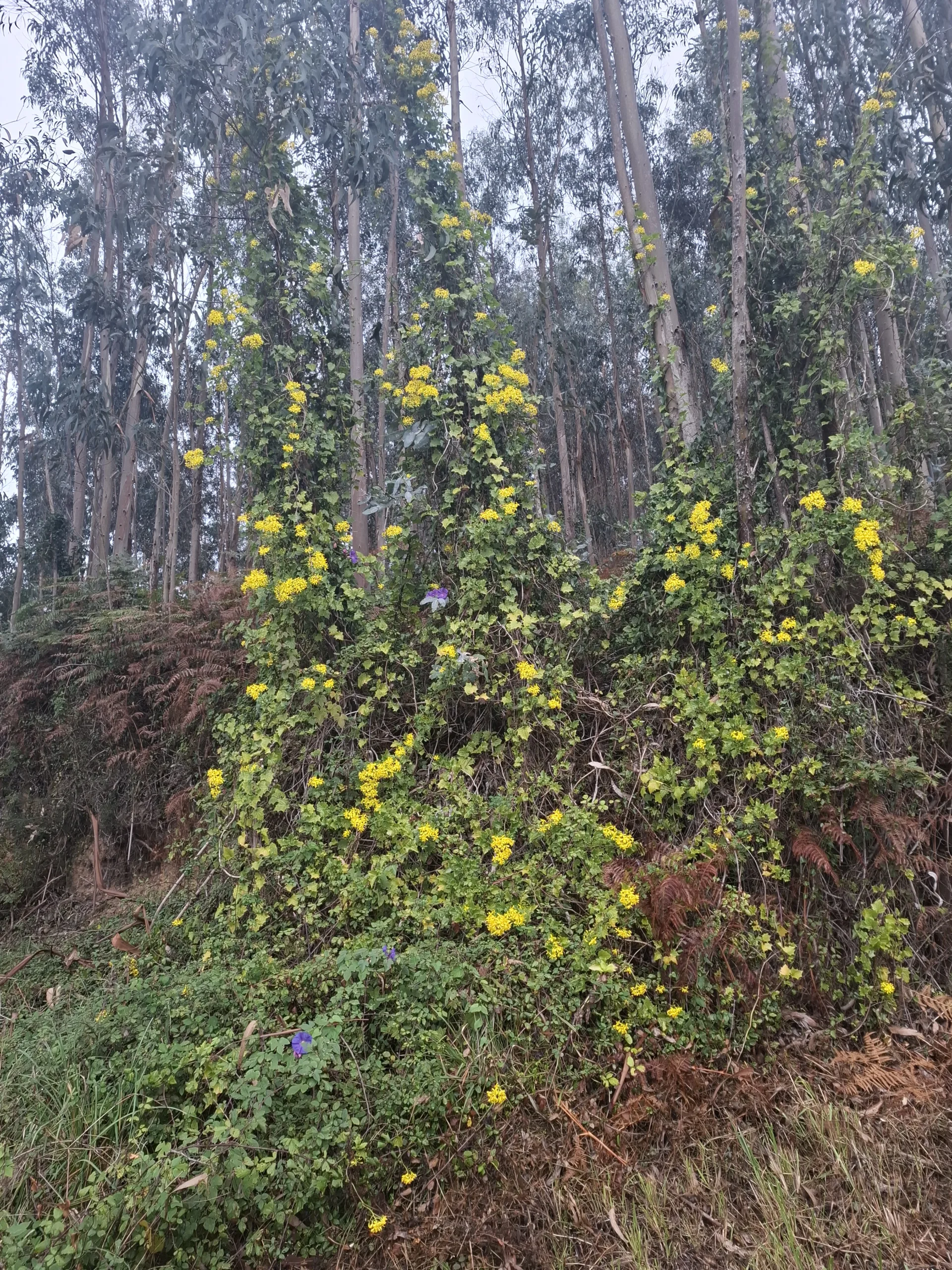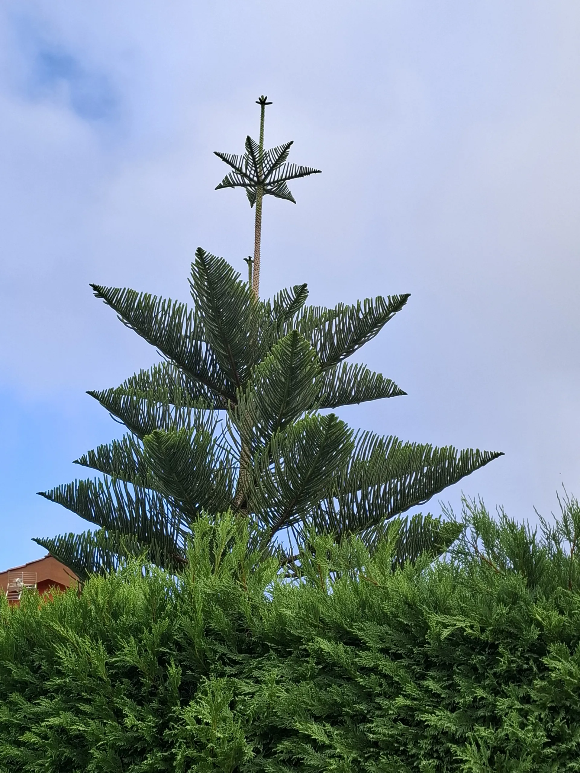 Ono to dneska vůbec bylo jak průchod botanickou zahradou. Vrcholem byl snad 20 metrů vysoký blahočet ztepilý neboli Araucaria Heterophylla. O něm jsme jenom četl. V zahradnictví se někdy dá koupit jako pokojovka, ale tady se hvězdice jeho větví vznášejí až k nebi. Ještě že se mraky protrhávají, Asturie potvrzuje svoji přeháňkovou pověst.