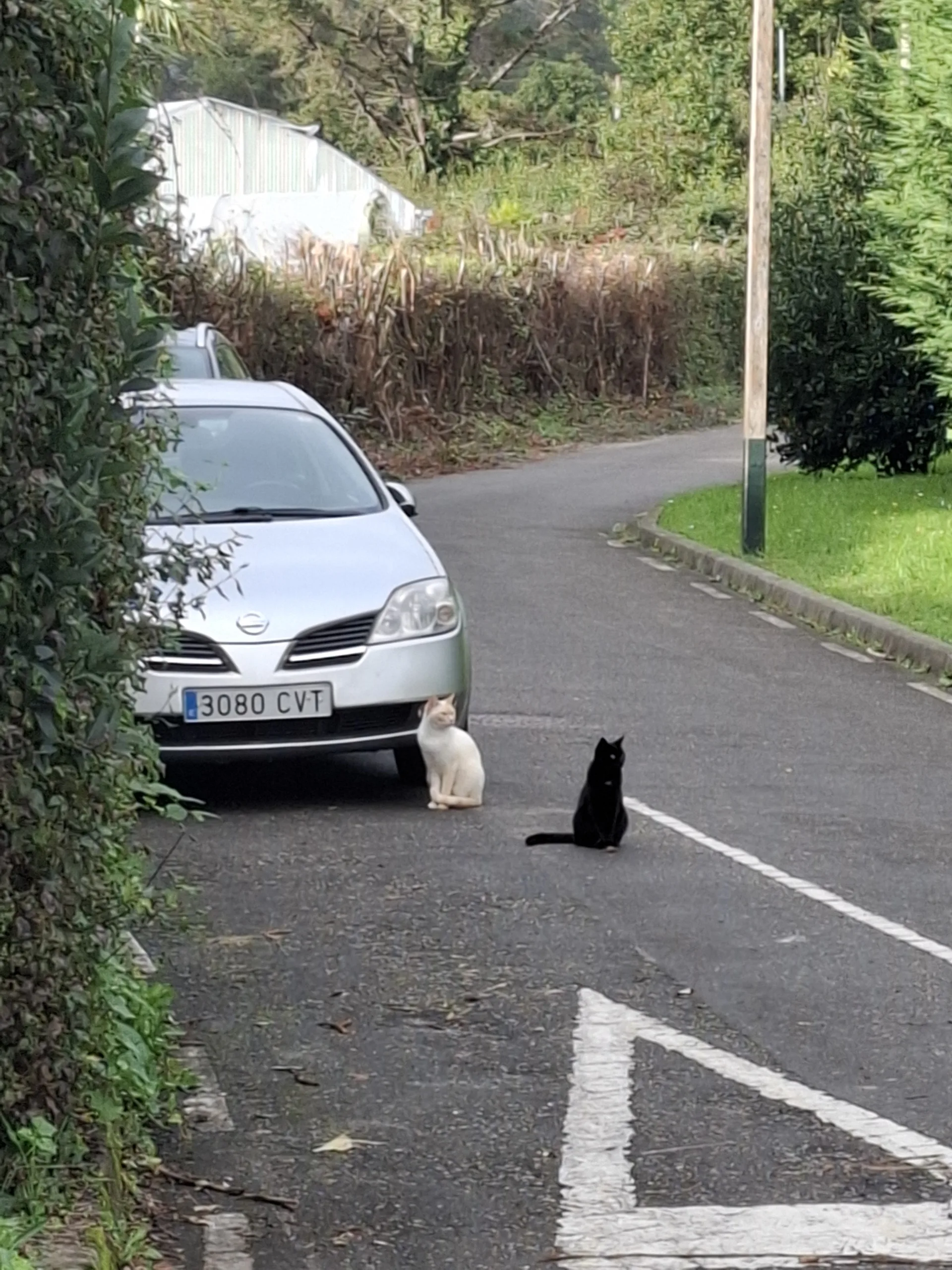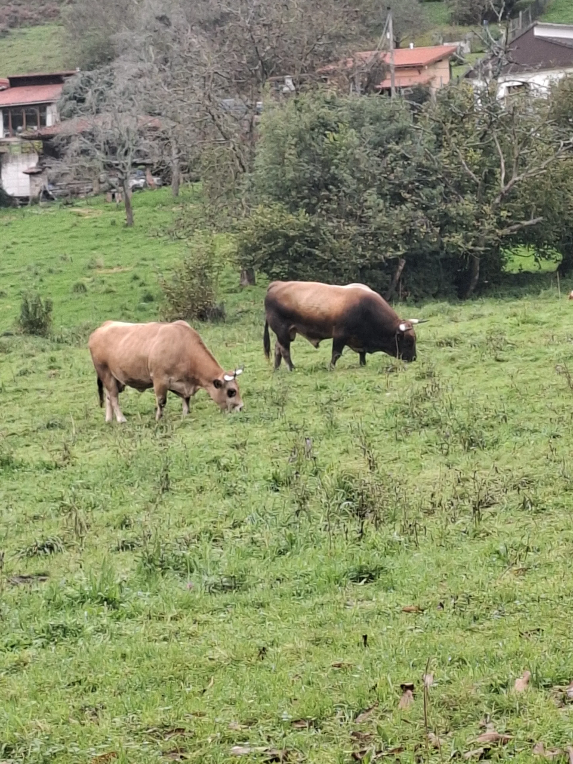 Na mostě nad dálnicí Autovis cantábrica potkávám na procházce správnou trojku. Pán, pes a malý koník. Oba se přiběhnout seznámit, koník se chová úplně stejně jako přerostlé stěně. Uvolí se na fotečku. Začíná tak jako poprchávat, vypadá že budu muset vytáhnout pláštěnku. Poprvé ve Španělsku.