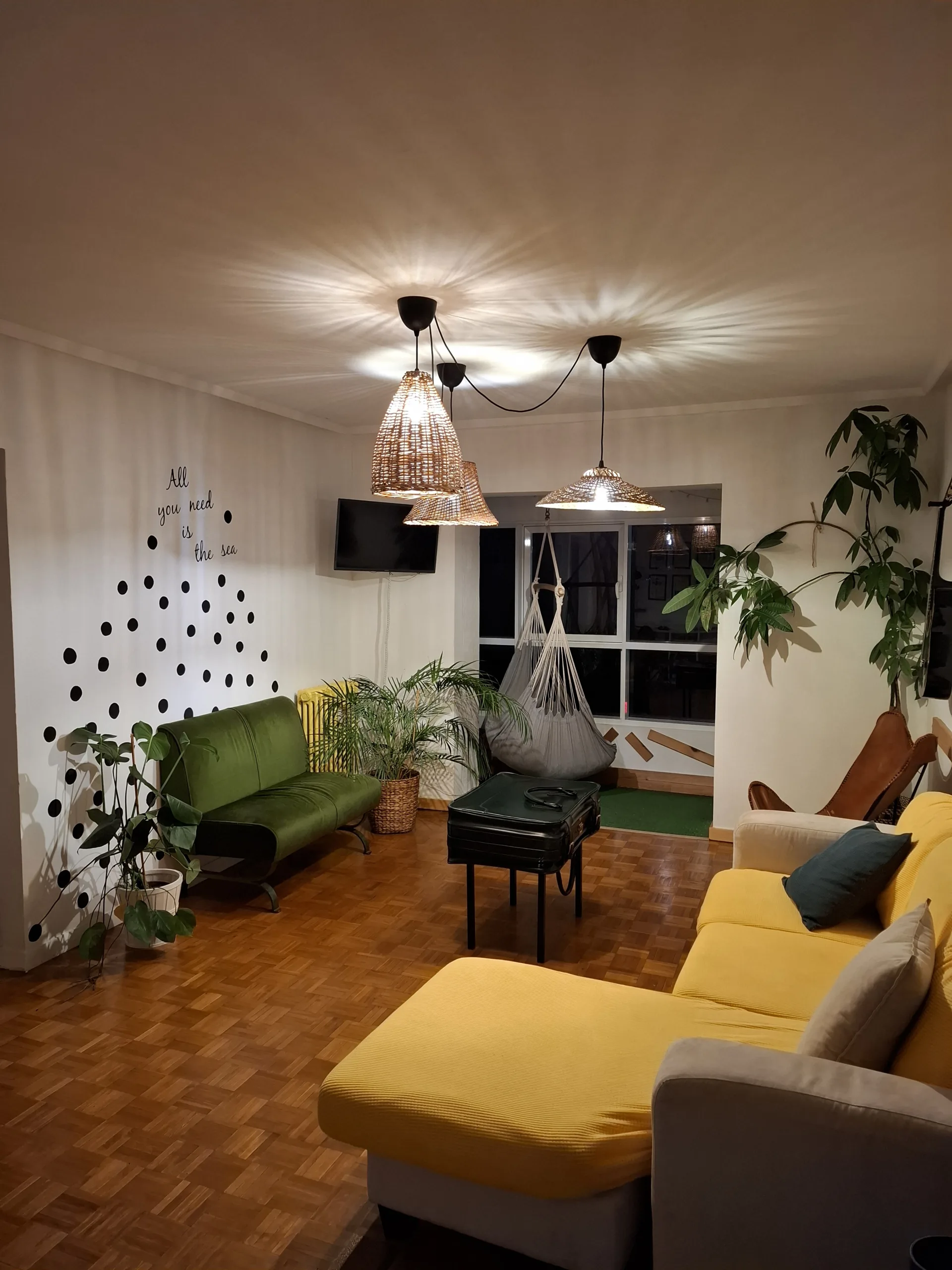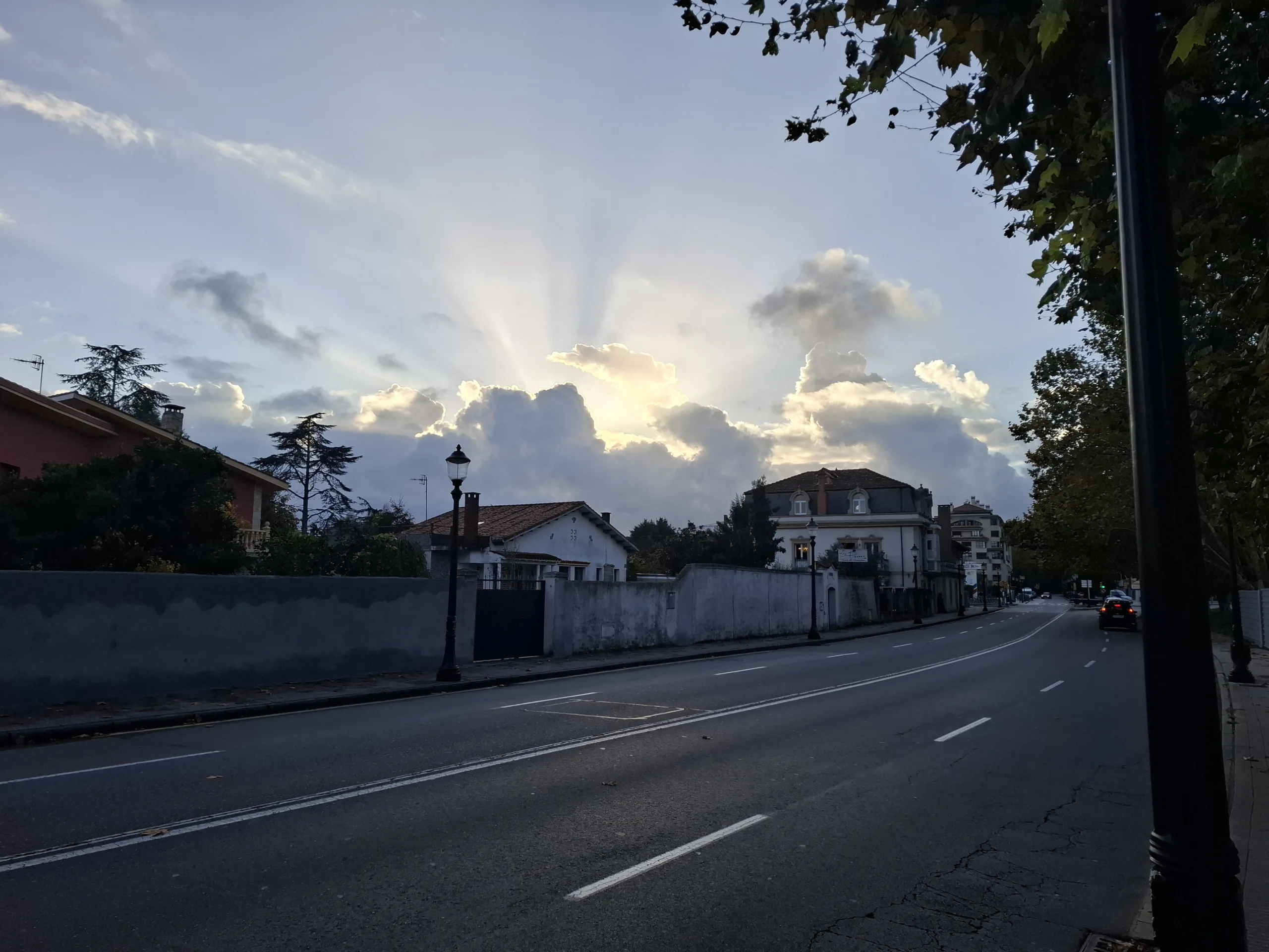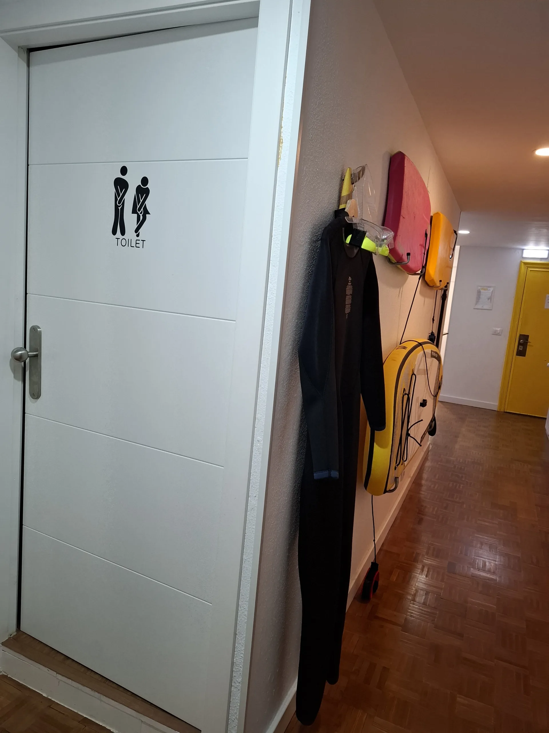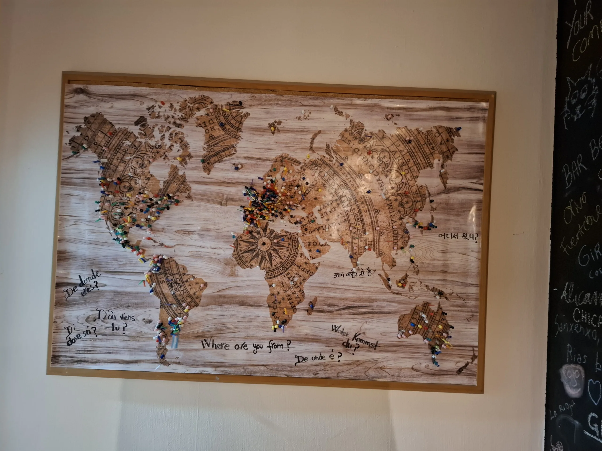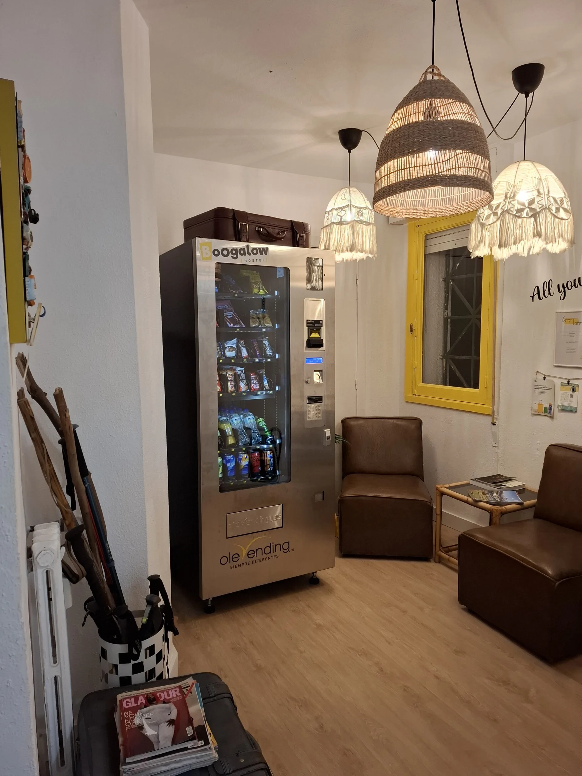 Je v patře domu přímo na městské pláži Paseo del Muro. Všechny náležitosti se vyřizují elektronicky předem. V mobilu mi pípne kód ode dveří a slečna mě naviguje výtahem až ke správným dveří, kde mi přijde druhý kód s číslem postele a skříňky. A musím si sednout. Takový albergue jako je Boogalow hostel jsem ještě nezažil. Na každé posteli voňavé bílé látkové povlečení, umělecky naaranžovaný ručník a z postele výhled přímo na moře. Perfektně vybavená kuchyňka se základními surovinami, lednice, na zdech surfy a koloběžky k volnému použití. Perfektně promyšlené příslušenství, značka ideál. Už se začíná stmívat, tak ještě vyrážím do města. Vidím světlo v chrámu Sv. Petra na konci pláže, jdu nejdřív tam