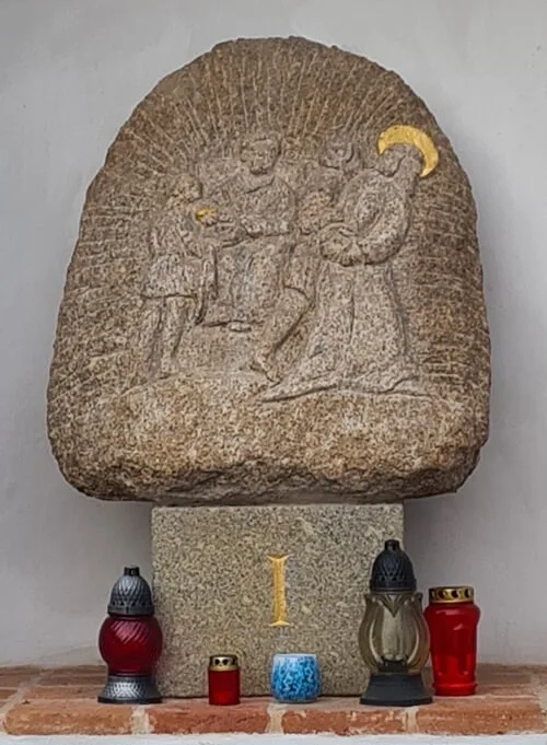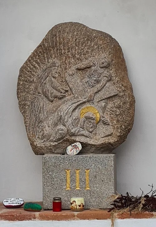 Na Skalce jsem našel svůj první patník s velkou mušlí, takto znakem Svatojakubské cesty.