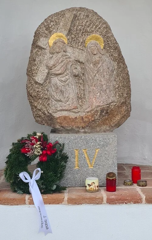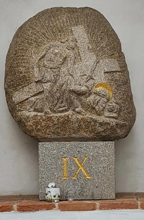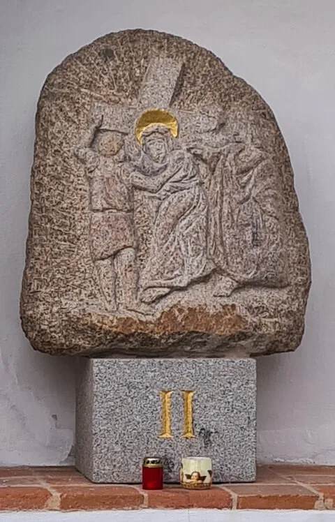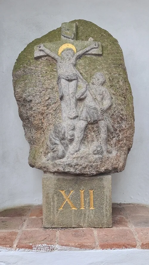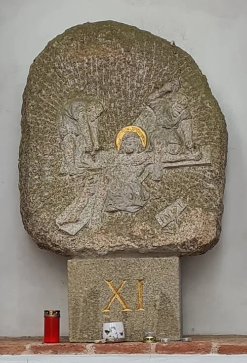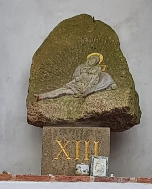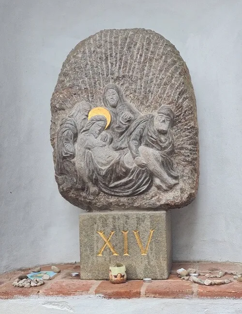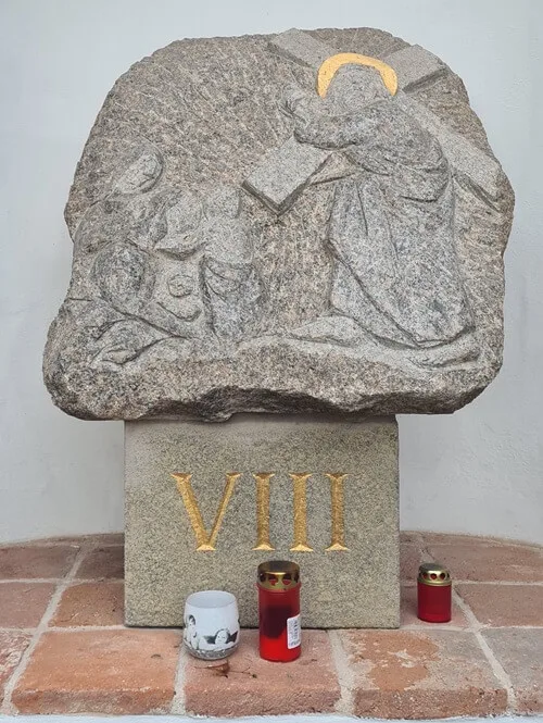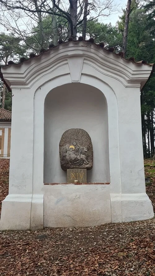 Strategická informace – najdete ho napravo od kostelíky S. Máří Magdaleny v dřevěné schránce s jasně žlutou svatojakubskou mušlí.