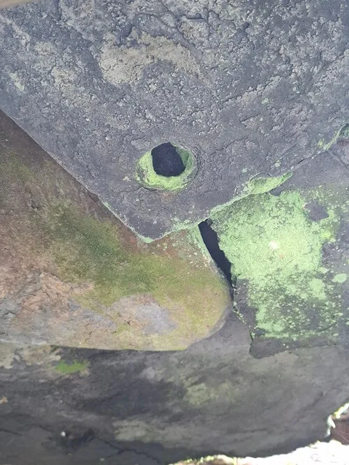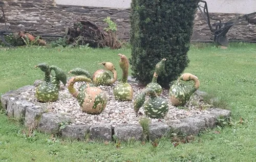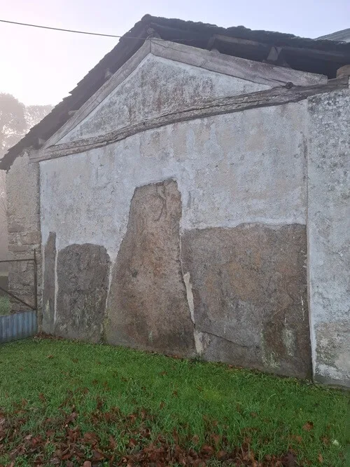 Kousek za ním se zdá, že do zdi stodoly snad zazdili menhiry.