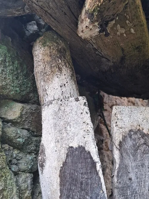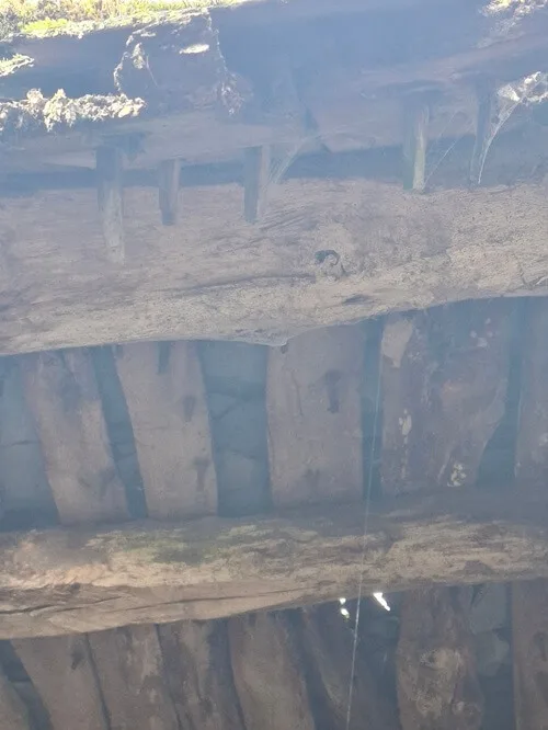 To je vidět i na mostě Ponte de Saa v Insua. Tenhle tu bude stát ještě za tisíc let. Jediné co trochu kazí dojem z trvanlivosti staveb jsou dřevěné prvky. Zřejmě je tu o tvrdé dřevo nouze a tak jsou trámy vlastně jen nahrubo otesané kmeny. Po křivici.