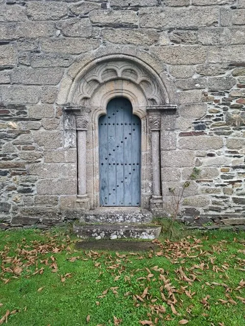 První, co se v dalším městečku vynoří z mlhy, je hřbitov. Ostré špičky nichos začíná nasvěcovat sluníčko a tak je přeci jen trochu veseleji. Kostelík Iglesia de San Xoán de Alba je zavřený, co nadělám.