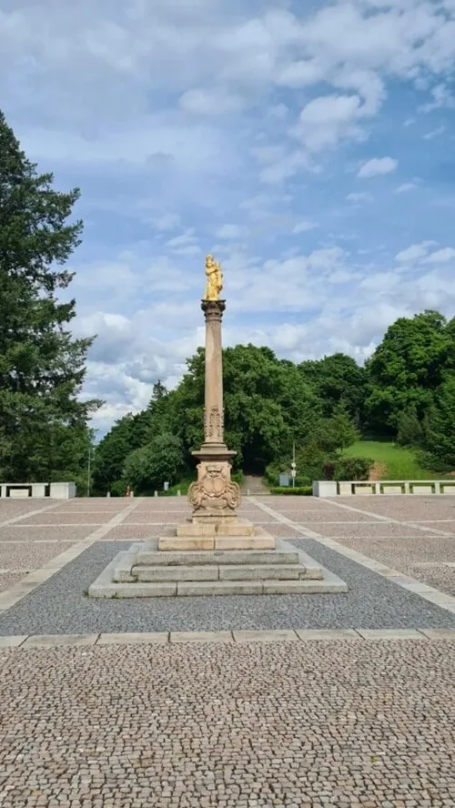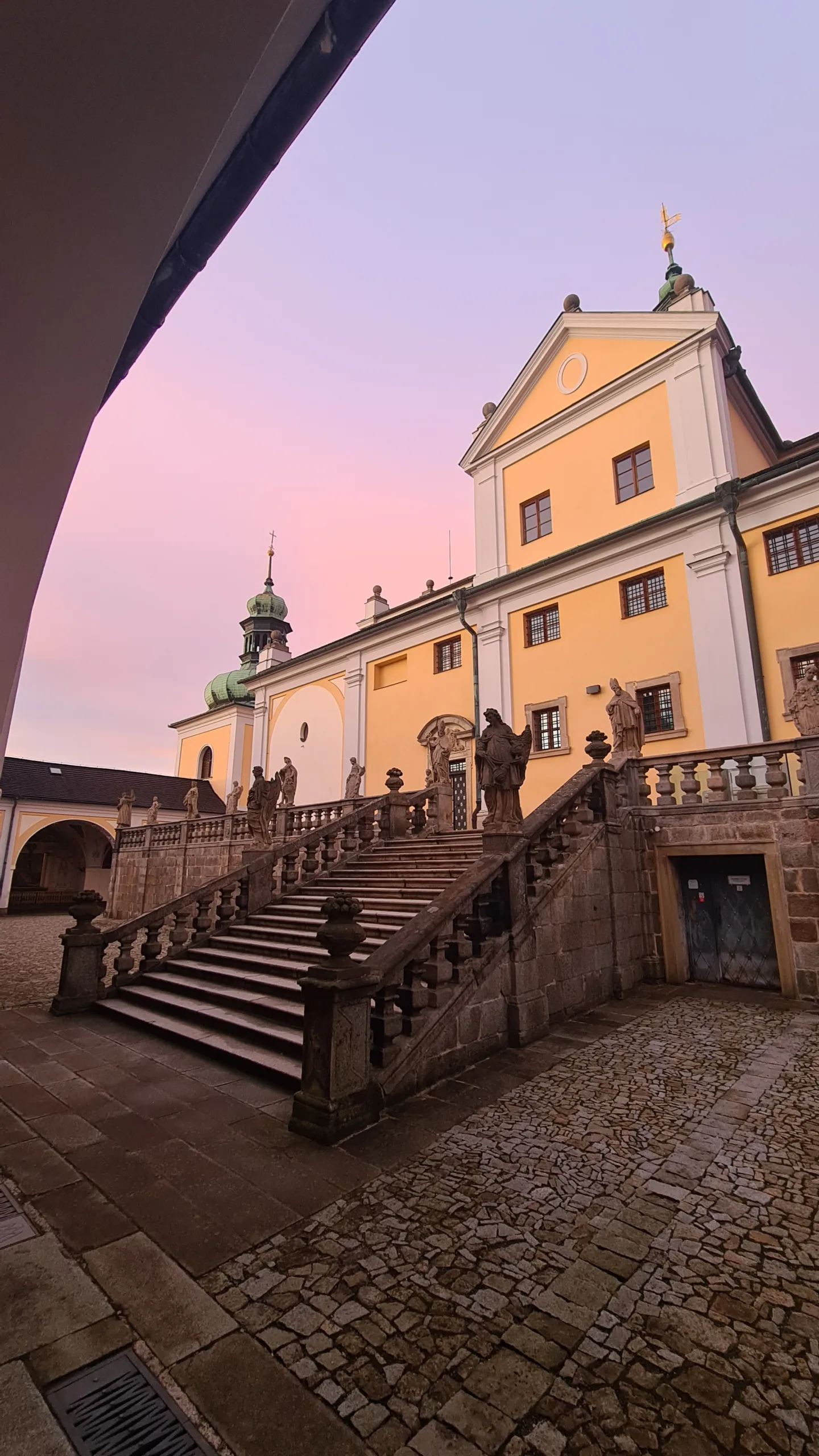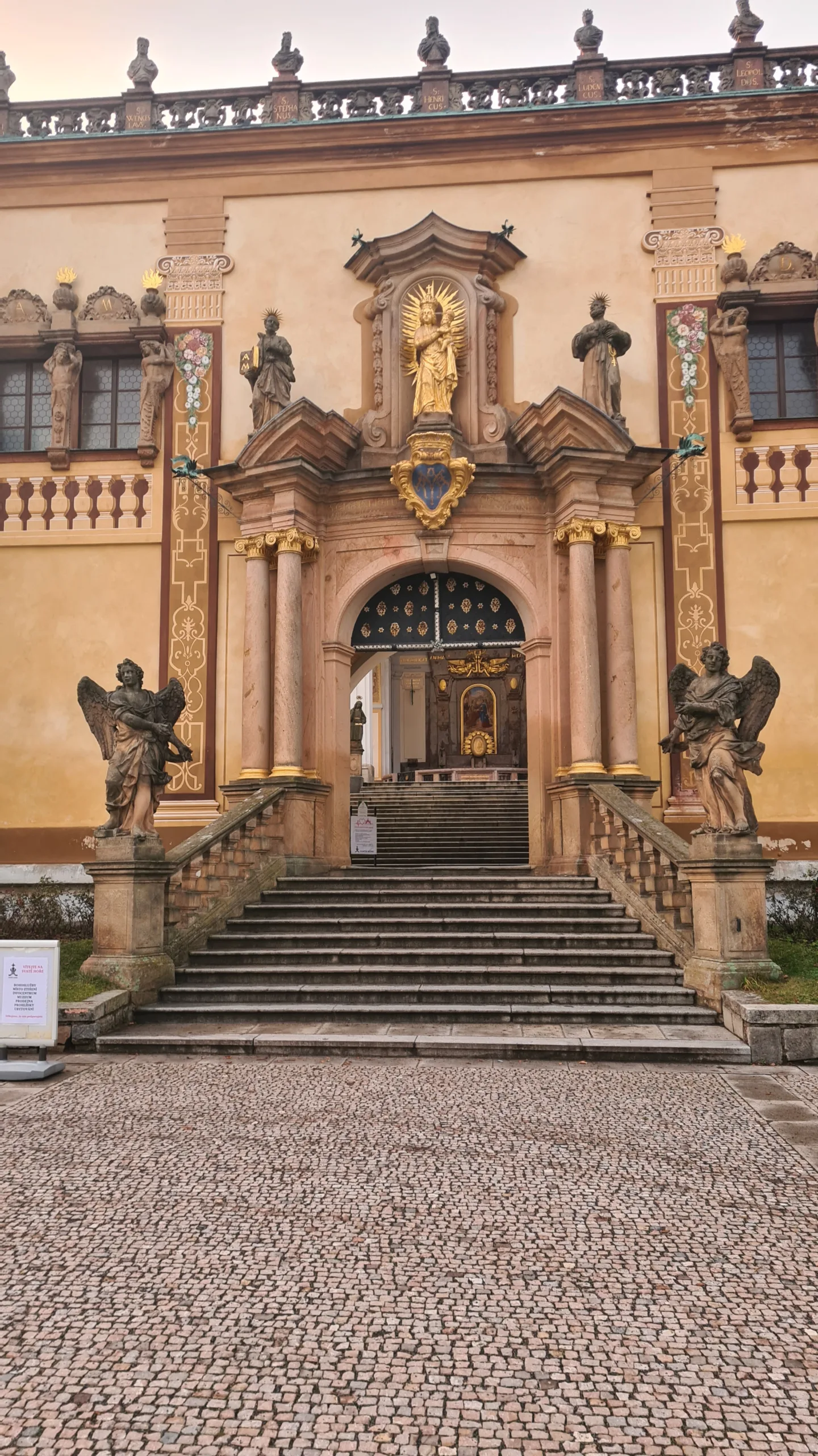Po nich se původně požár rozšířil, protože samotné schody jsou sice kamenné, ale nad nimi je dřevěná střecha. Tvoří báječnou zkratku. Seběhl jsem svatohorské schody dolů do města (pouhých 373 schodů), na náměstí koupil mastičku na nohy, ale kam pro boty? Cihla jako obvykle mrtvá, takže navigace nic.