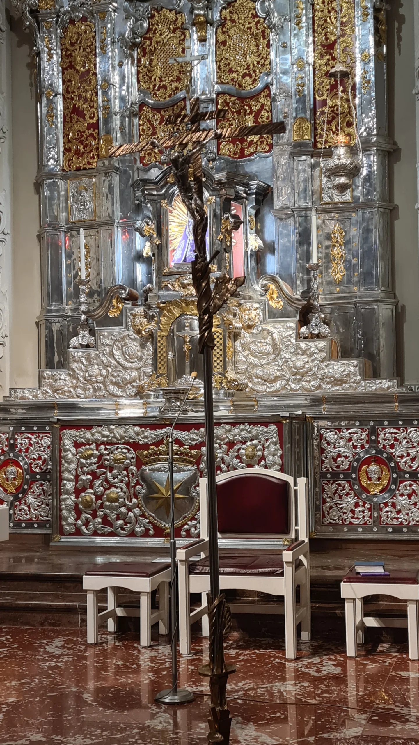 Areál jsem navštívil už předtím, ale poprvé si mohu prohlédnout interiér kostela. Stříbrný oltář je nádherný.