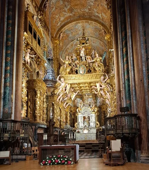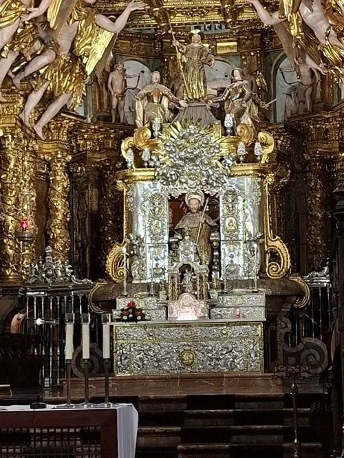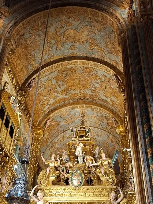 Večerní kouzlo – jen pár lidí, co tiše sedí před oltářem a modlí se před mší. Připojuji se k nim a plním slib, který jsem dal lidem po cestě, že se za ně v katedrále pomodlím ke Sv. Jakubovi. V rámci toho, co umím. Věřím, že když jde modlitba od srdce, není forma až tak podstatná.