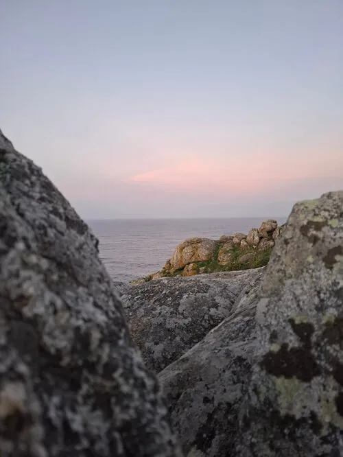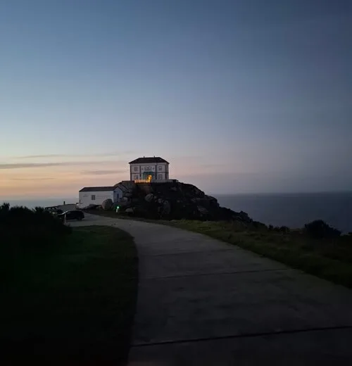 Předpověď nezklamala, je jen zima a tma. Nebe propichují miliony hvězdiček, když šlapu po úzké silničce k majáku Faro de Fisterra. Nalevo pode mnou šumí moře. Občas na jeho hladině vidím světélka rybářských lodí. Čelovku ani nepotřebuju, cesta je rovná a do kopce, nedá se zabloudit. Ticho narušily jen kroky tří dam, které také za tmy scházely po silnici proti mě. Kde se tu vzaly? Jako když tři sudičky odcházejí po vykonané práci. Za zatáčkou už vidím záblesky majáku.