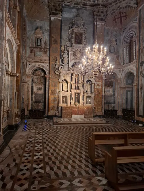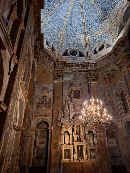 Podívám se ještě jednou k relikviáři Sv. Jakuba. Přísný strážce Jakubových zad mě na druhé straně dá dokonce dlouhou chvilku. Když není fronta. Naprosto mě fascinuje jedna kaple, která je celá vykládaná barevnými kameny. Od podlahy přes mramorové oltáře až po kupoli stropu pokrytou jemnými reliéfy. Jak to ti chlapi udělali? Vždyť měli jen majzlík a paličku a zůstala po nich taková nádhera!